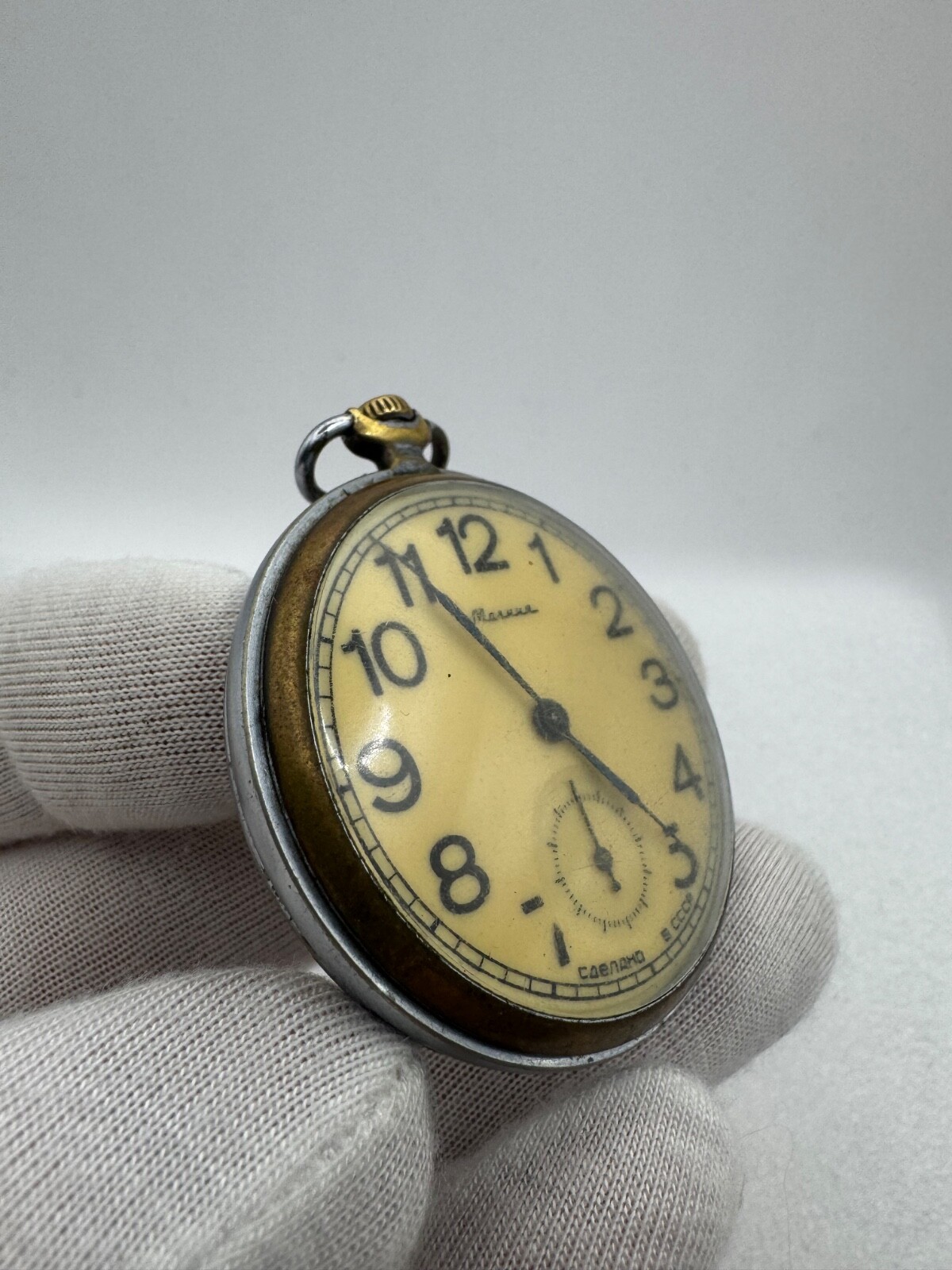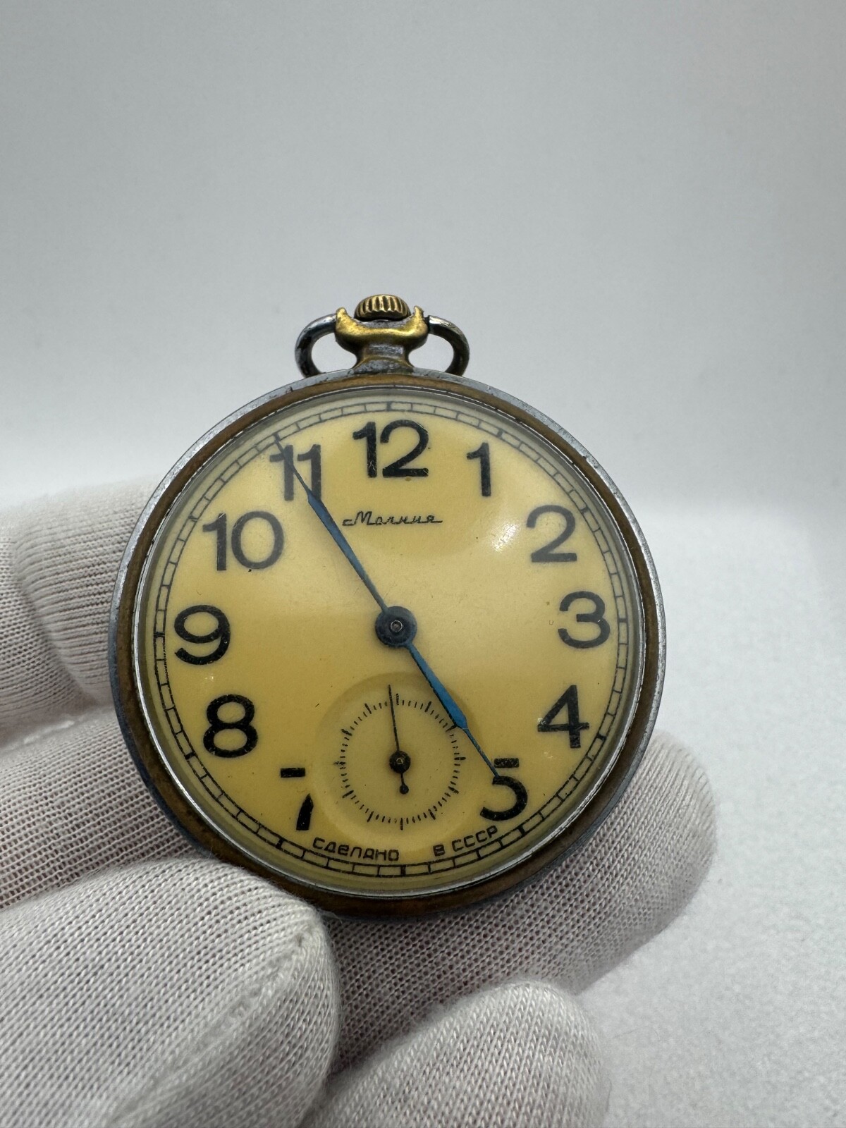 как выглядит Vintage USSR Soviet Era Pocket Watch Molnija Cal.3602 Mechanical 18 Jewels фото