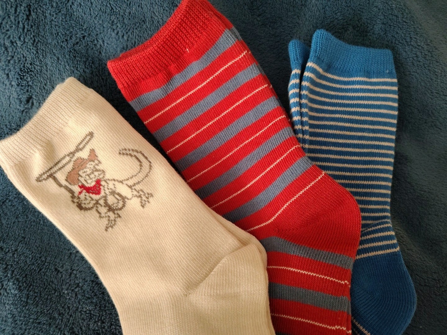 как выглядит New Crewcuts Boys Medium K13-k2 3 Pack Socks Dino Cowboy Blue And Red Striped фото