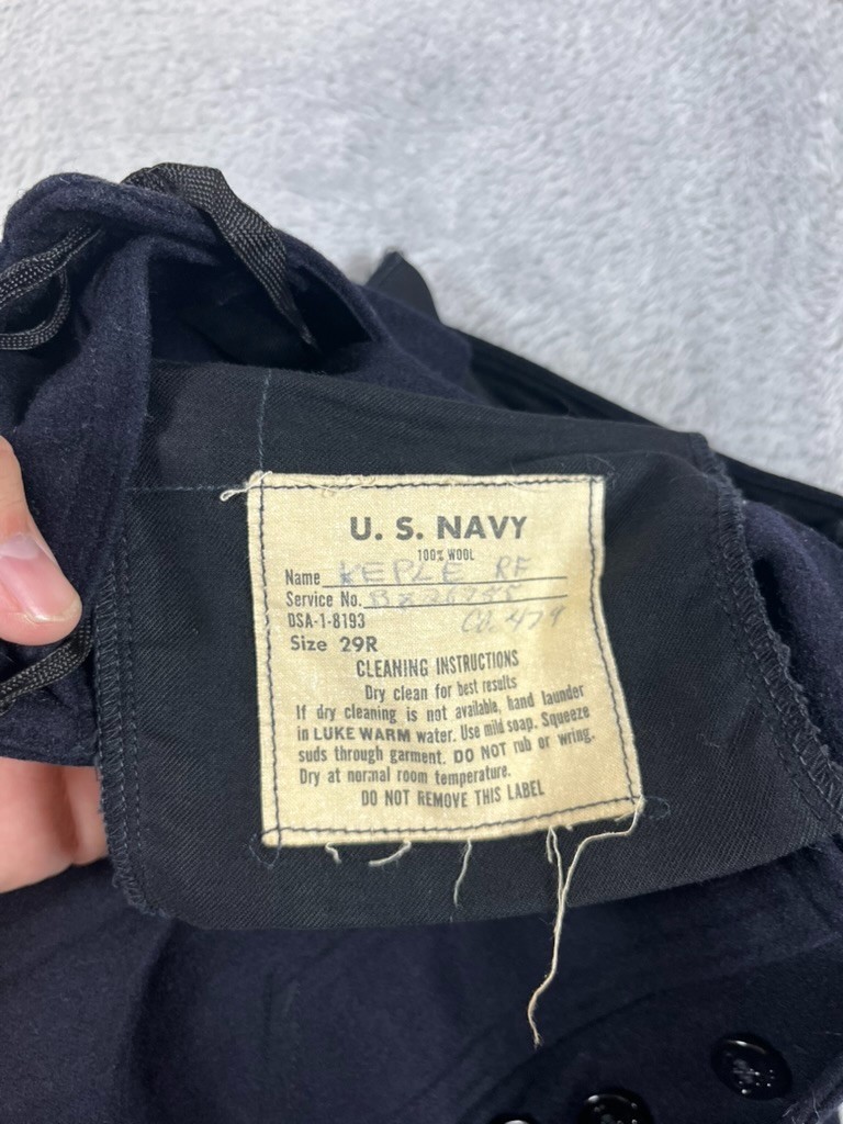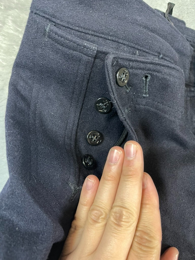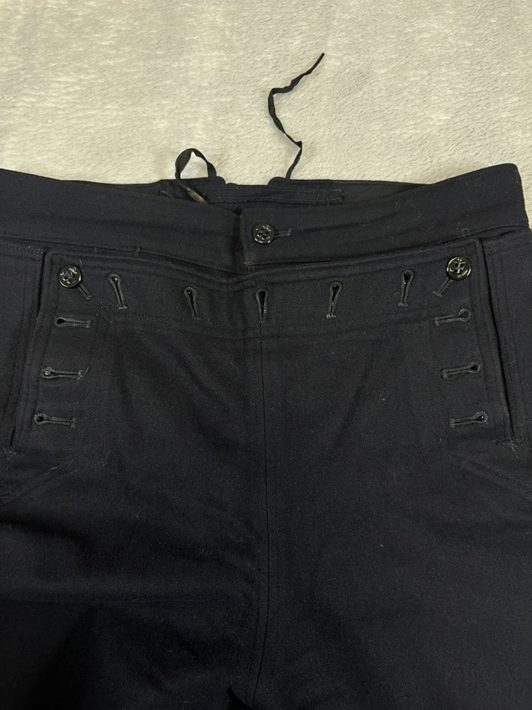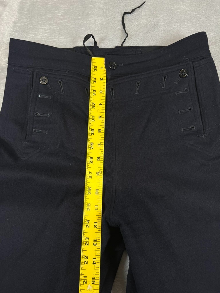 как выглядит Vintage Navy Wool Sailor Wide Leg Pants Anchor Button Flap Front Tie Back 29R фото