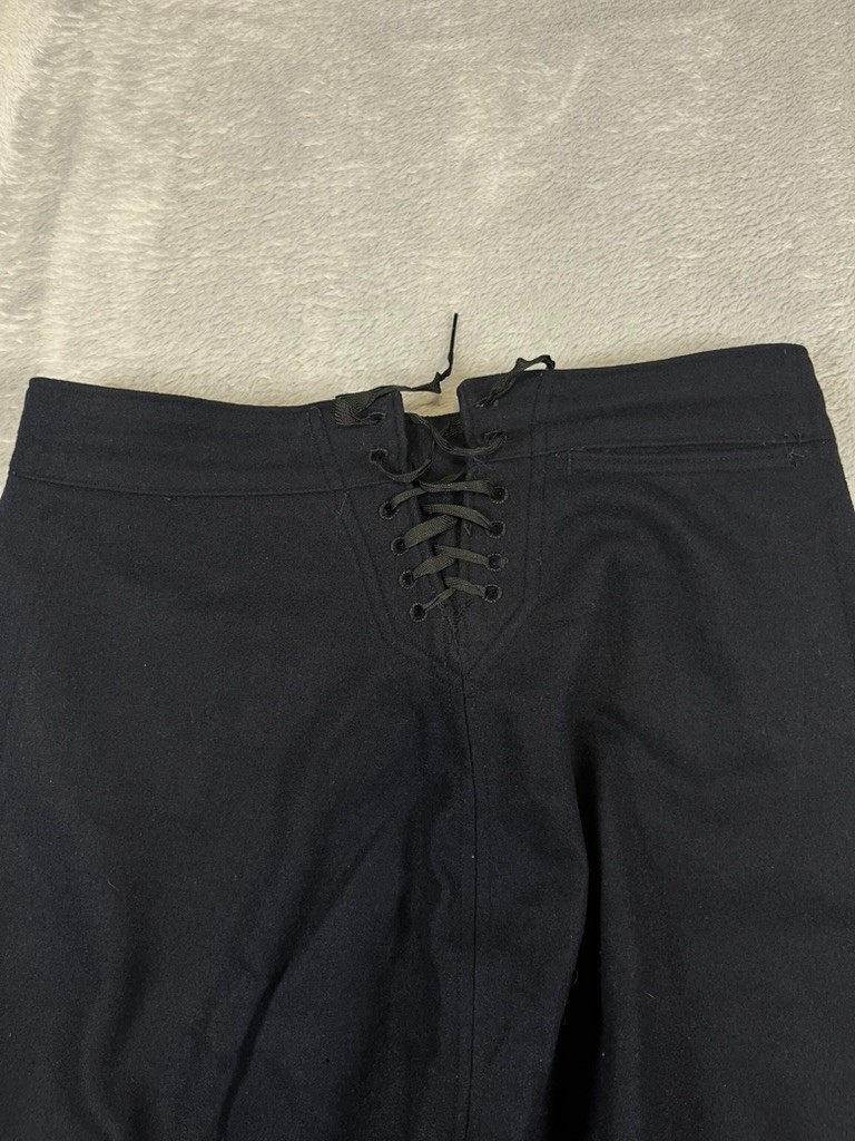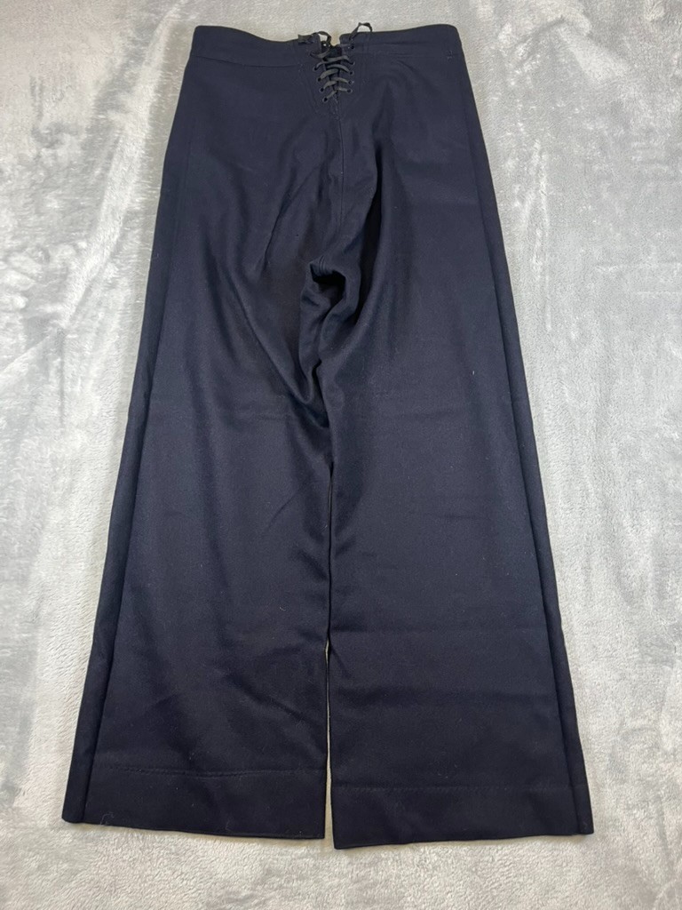 Vintage Navy Wool Sailor Wide Leg Pants Anchor Button Flap Front Tie Back 29R