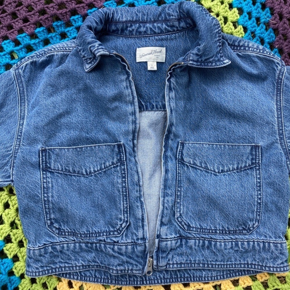 как выглядит VTG Small Denim Cropped Jacket Zipper Deadstock Jean Collar Preppy cowgirl punk фото