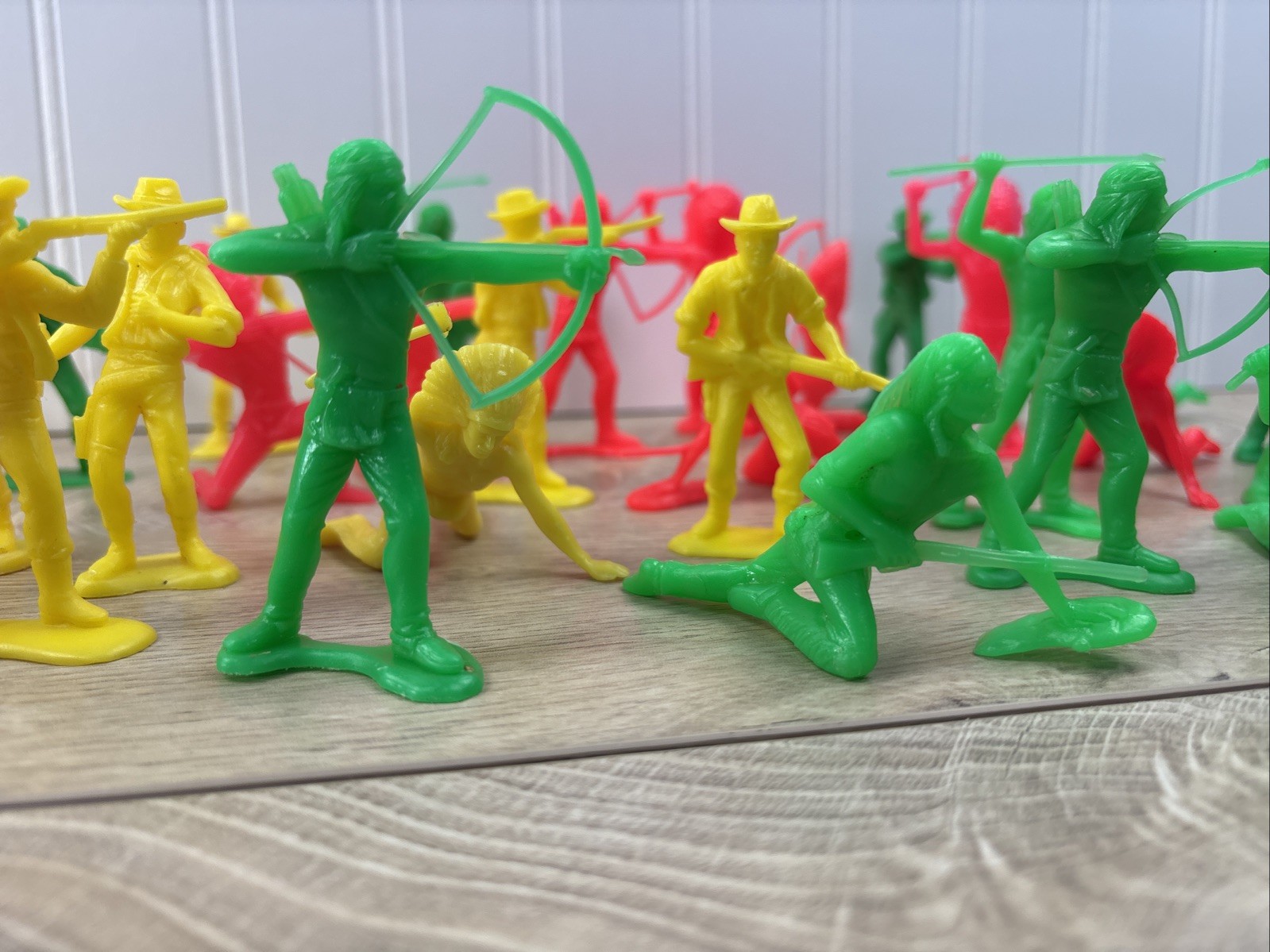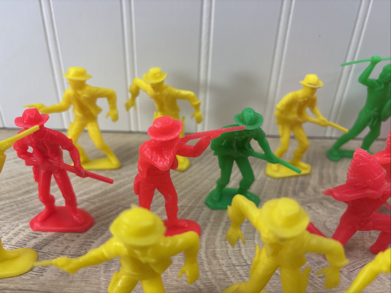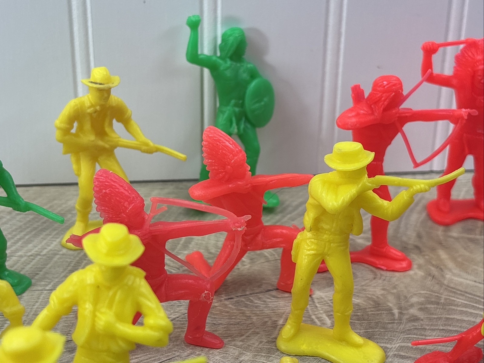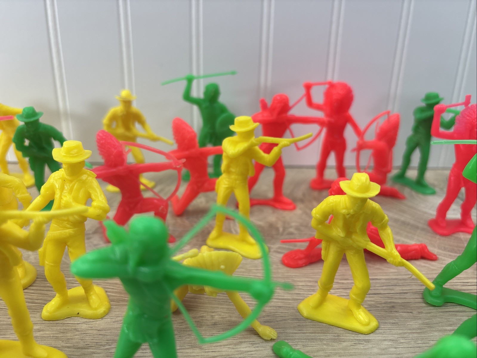 как выглядит Vintage LOT of 38 Cowboys Indians Western Plastic Figures Tim Mee Toys Red Green фото