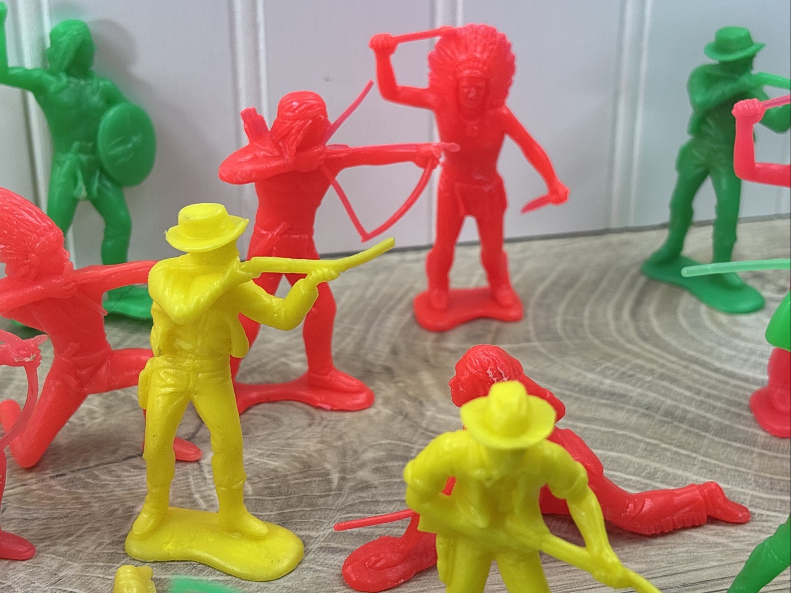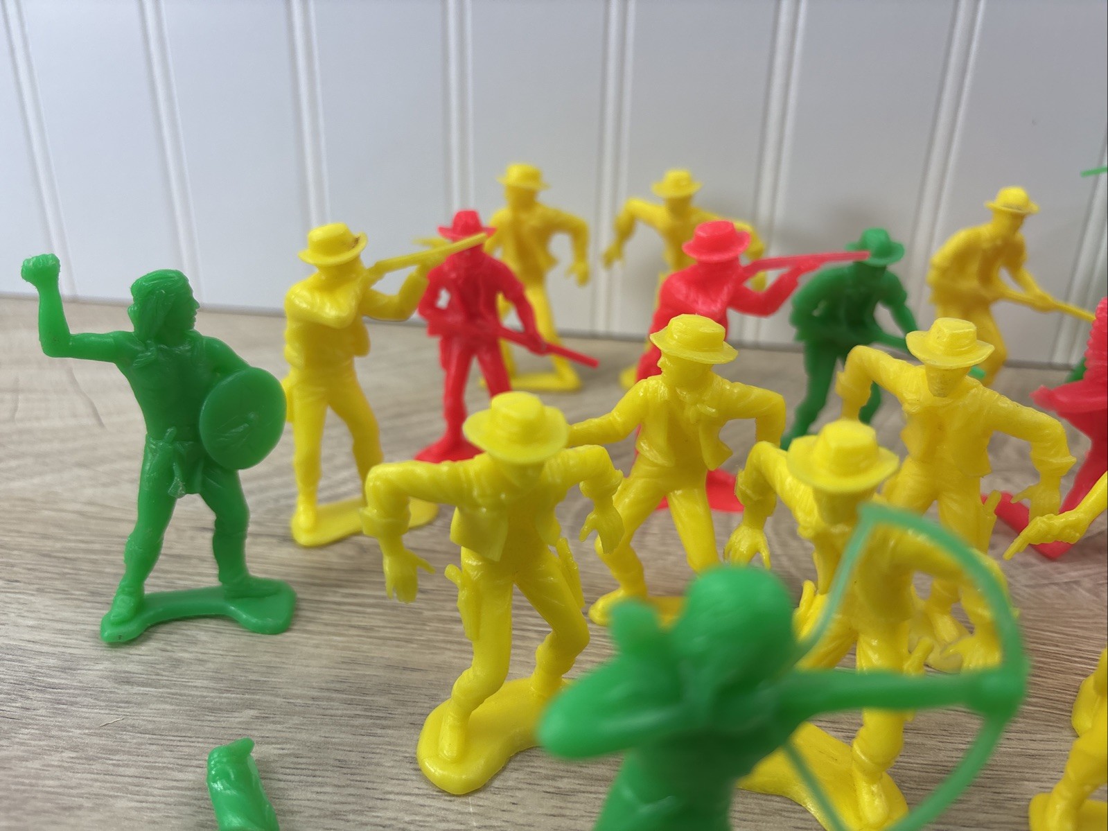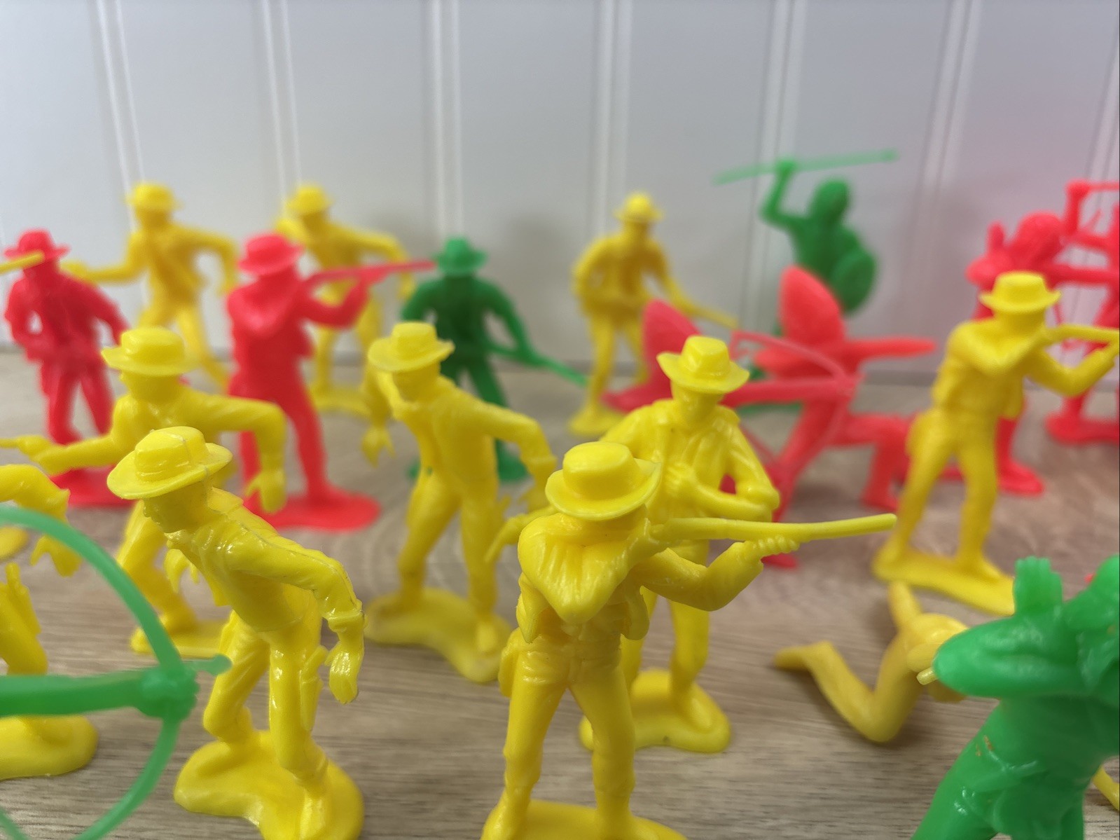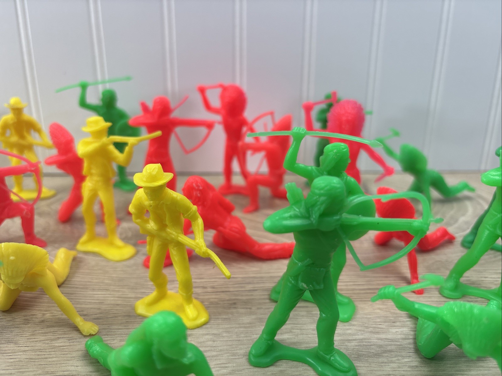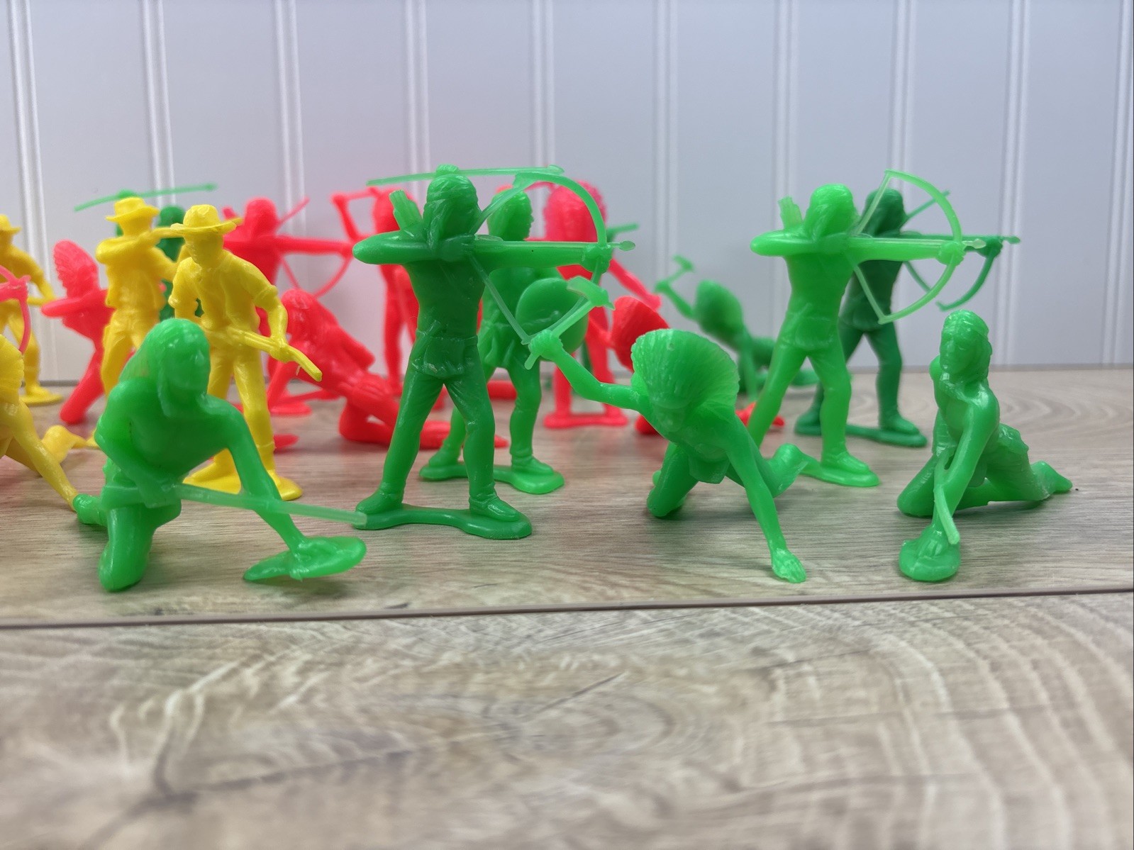 как выглядит Vintage LOT of 38 Cowboys Indians Western Plastic Figures Tim Mee Toys Red Green фото
