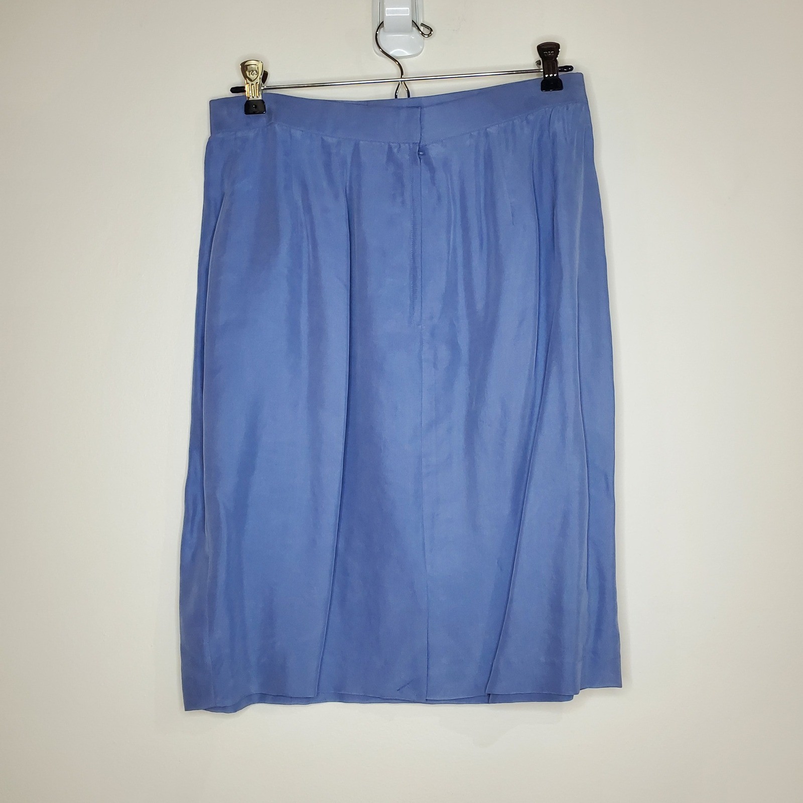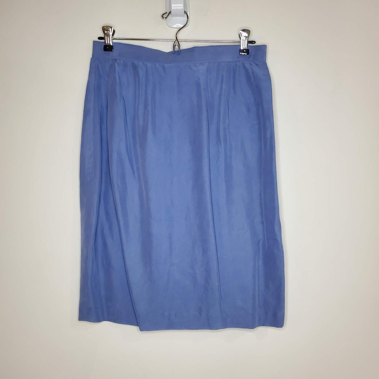 как выглядит Vtg Ann Taylor 100 Silk Periwinkle Blue Two Piece Suit Set Jacket Skirt Size 12 фото