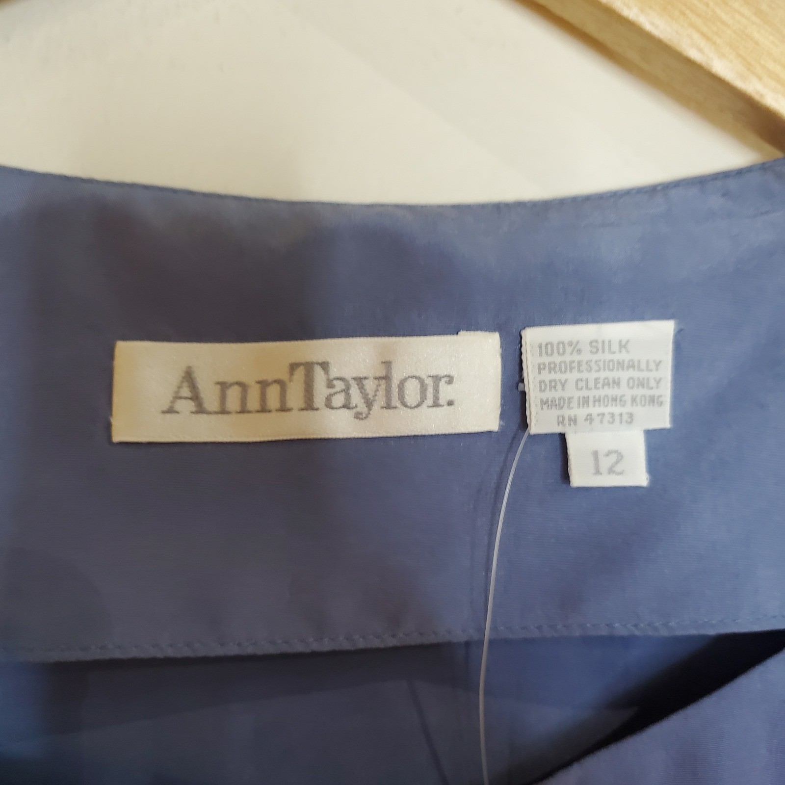 Vtg Ann Taylor 100 Silk Periwinkle Blue Two Piece Suit Set Jacket Skirt Size 12