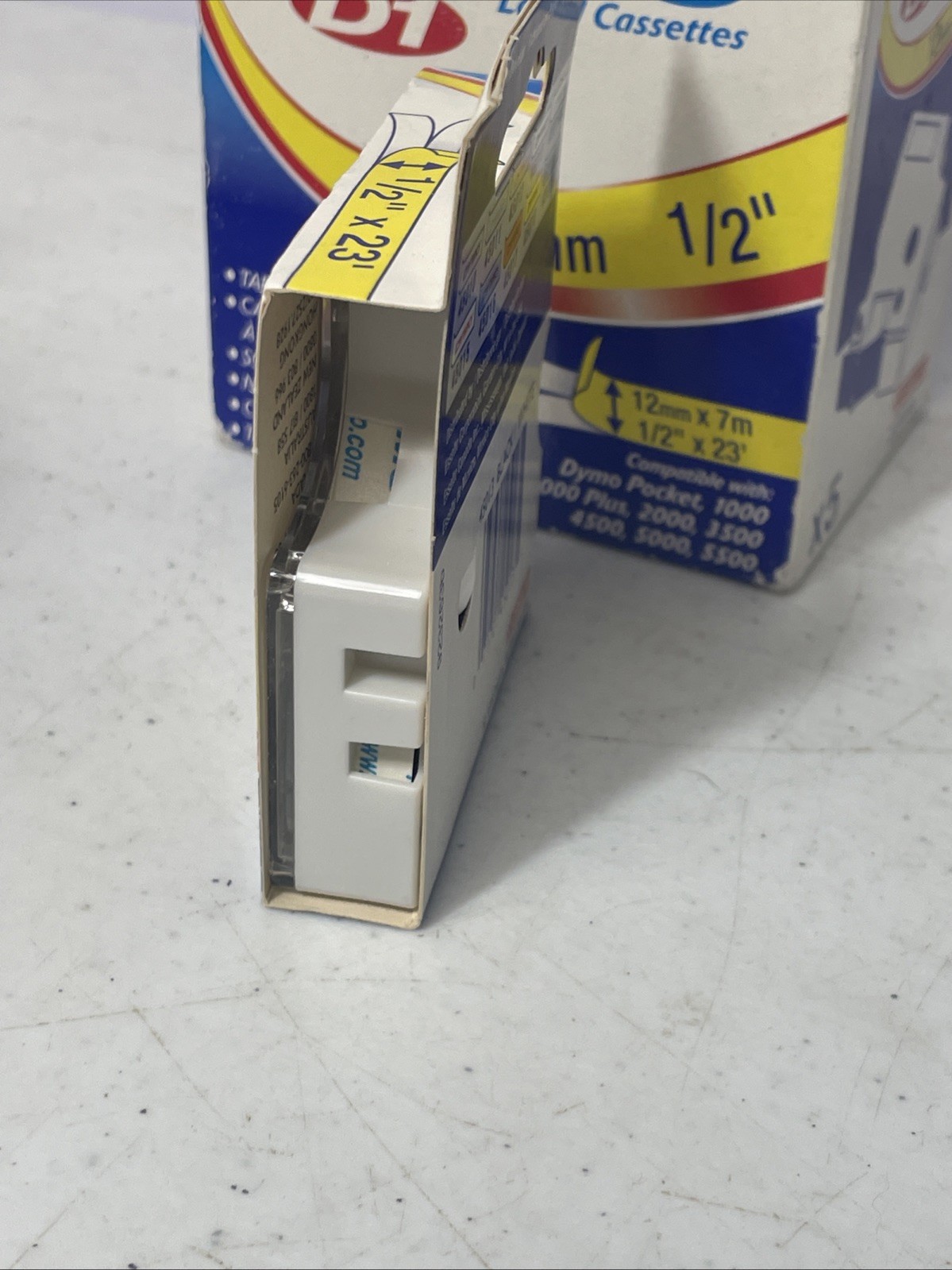 Original Dymo D1 Label Cassette Tape 45013 Black on White 1/2 12mm Pack 5 Pc