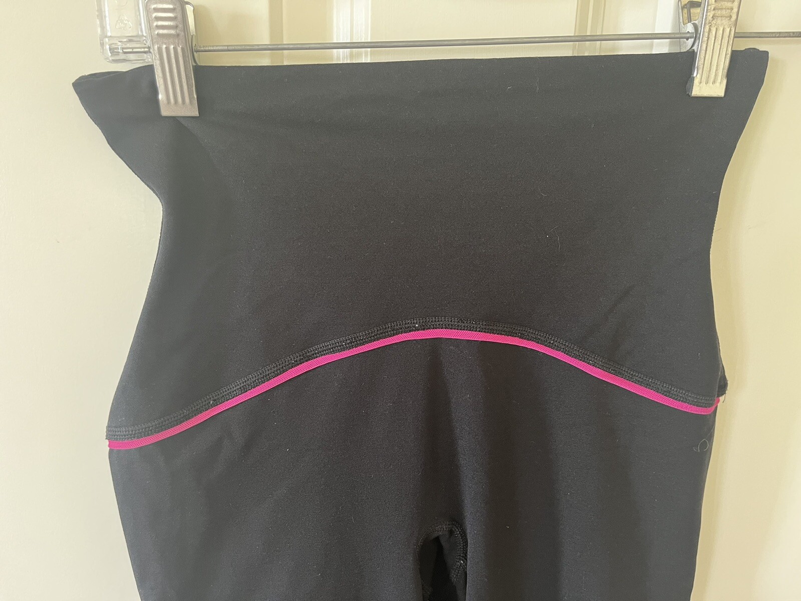 Spanx Crop Leggings M Black Pink Trim High Rise Athleisure Athletic RUNNING Yoga