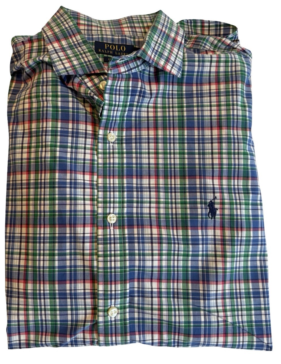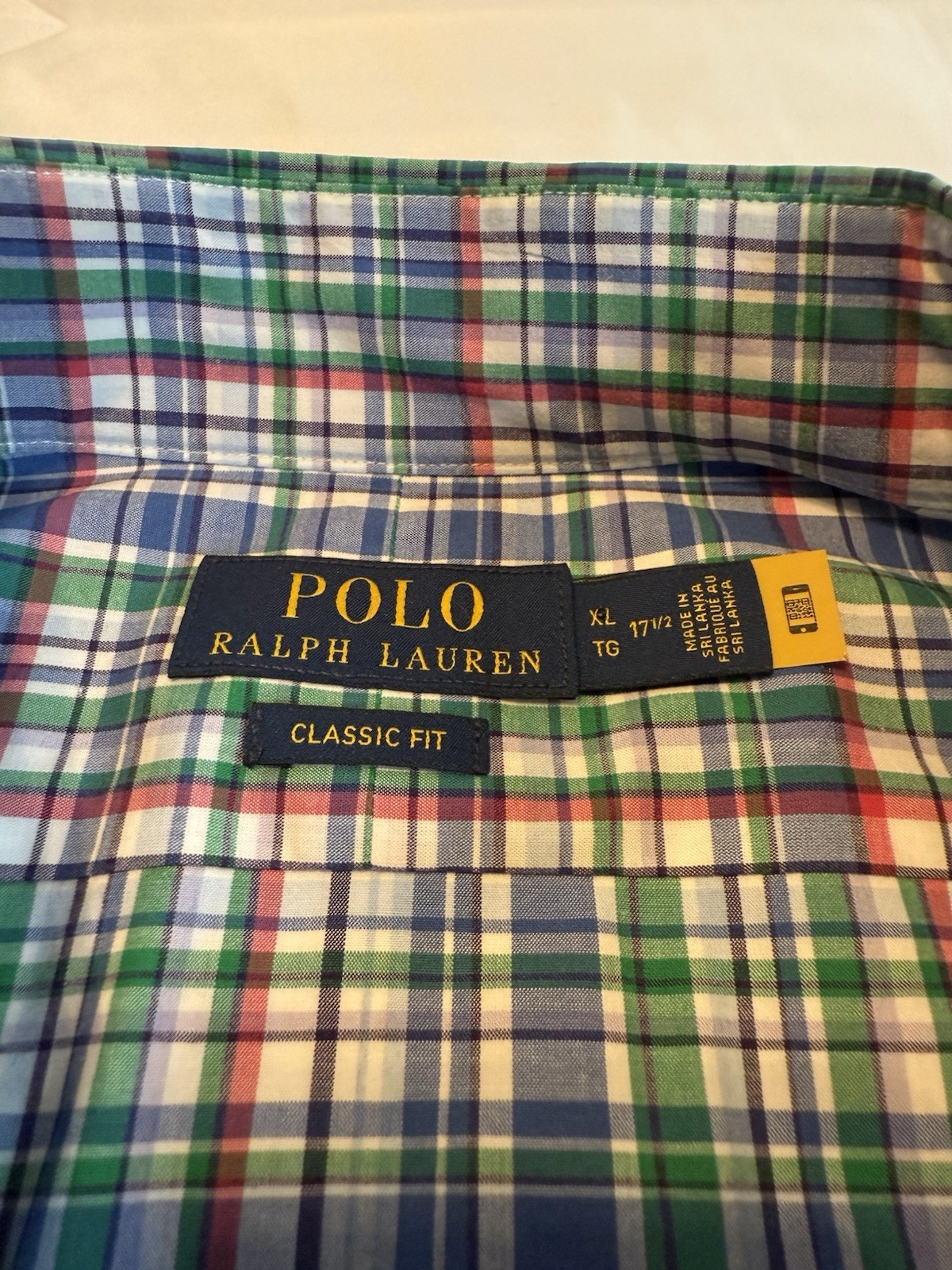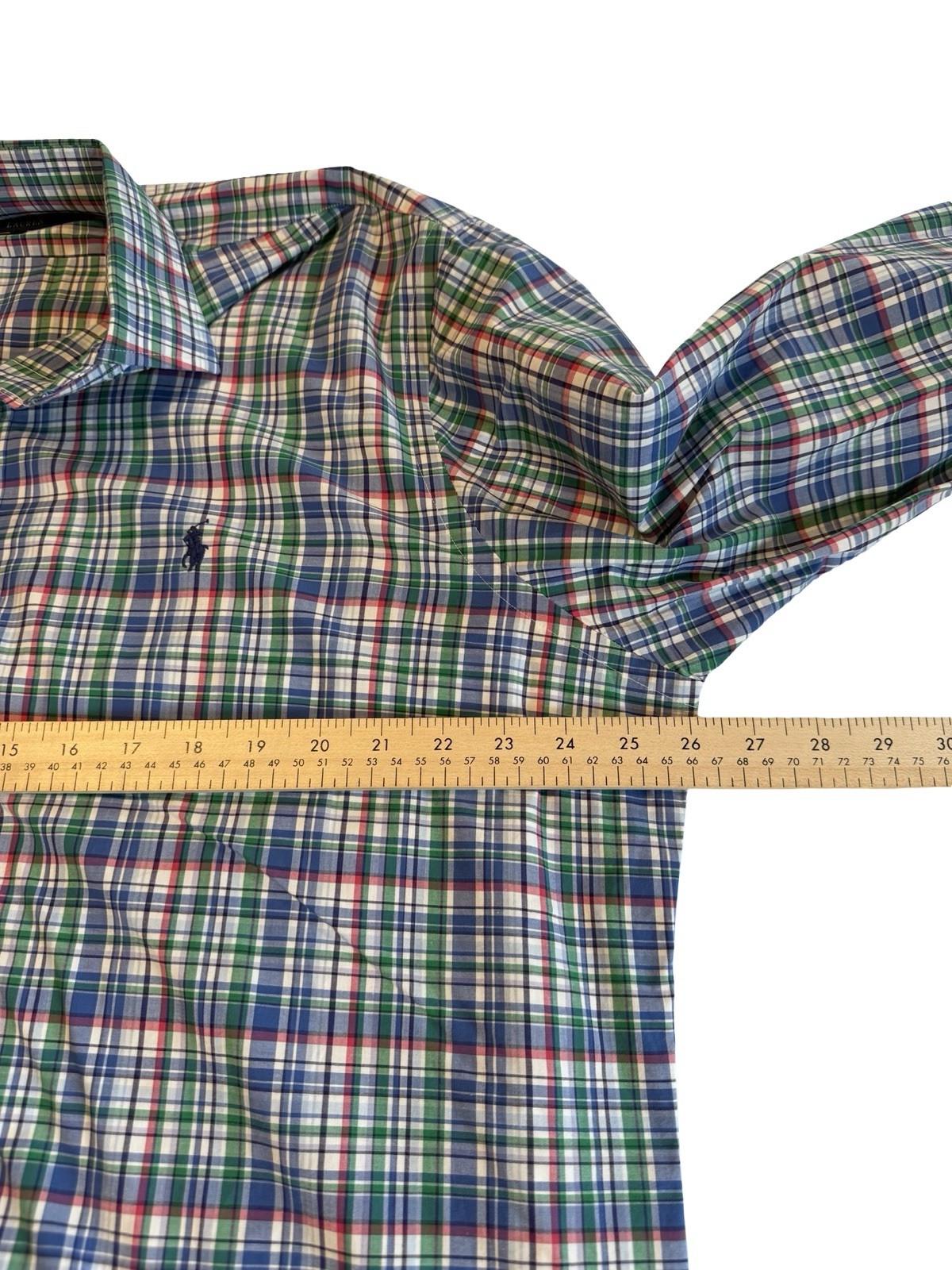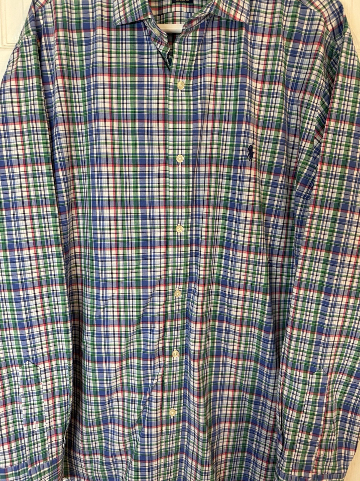 как выглядит Polo Ralph Lauren Classic Fit Dress Shirt Mens Sz XL Blue Green Plaid Stretch фото