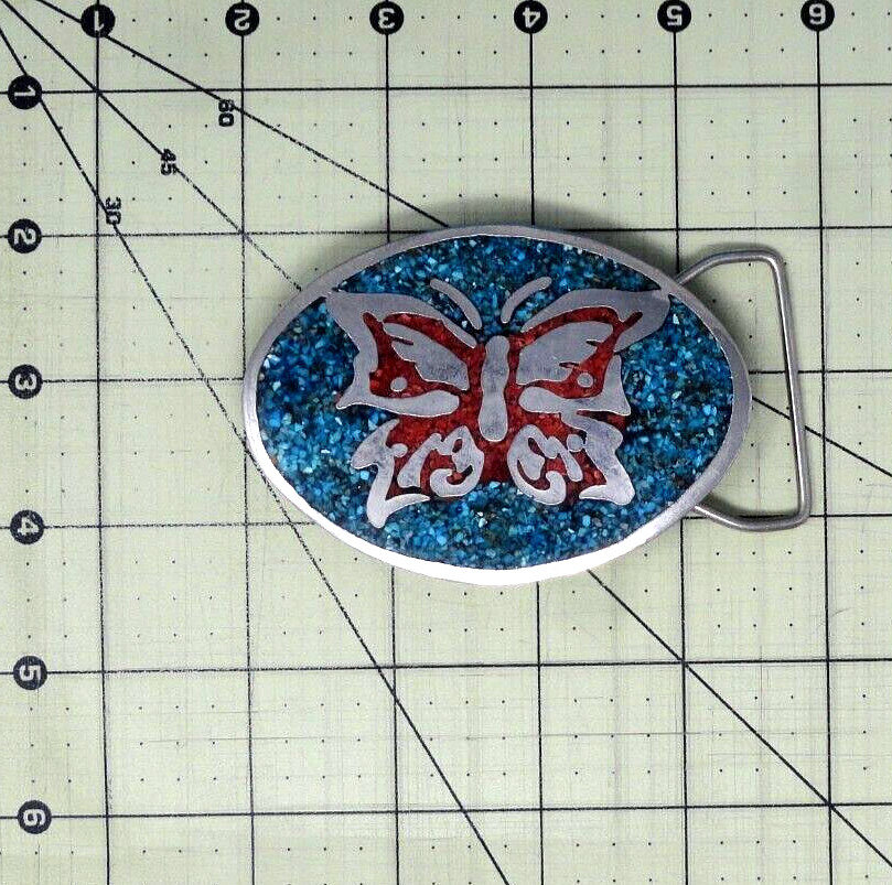 Butterfly Belt Buckle Boho Hippie Stone Inlay Coastal Cowgirl Vtg 70s .QRT120