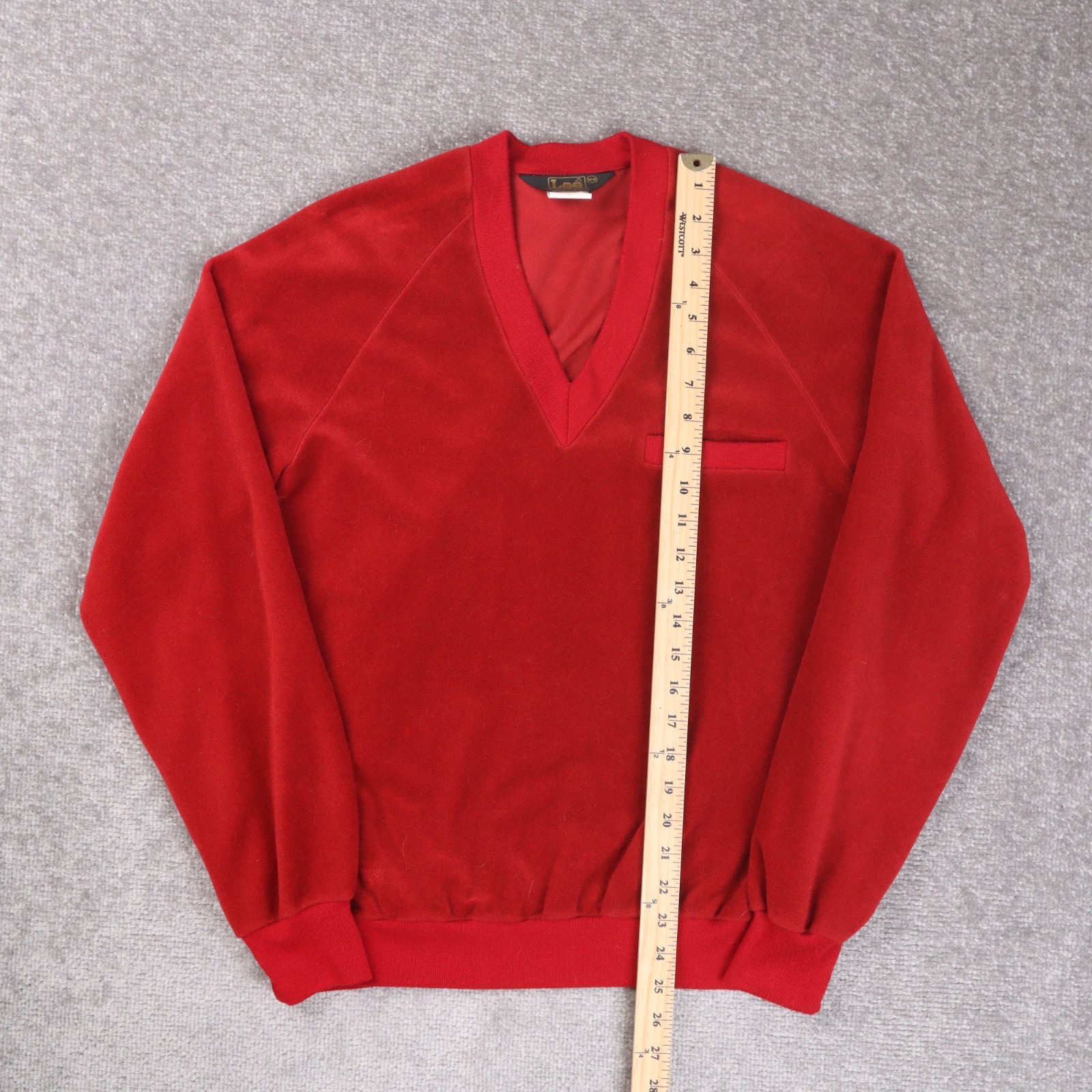 Vintage Lee Velvet Made in USA Medium Red Long Sleeve V Neck Sweatshirt