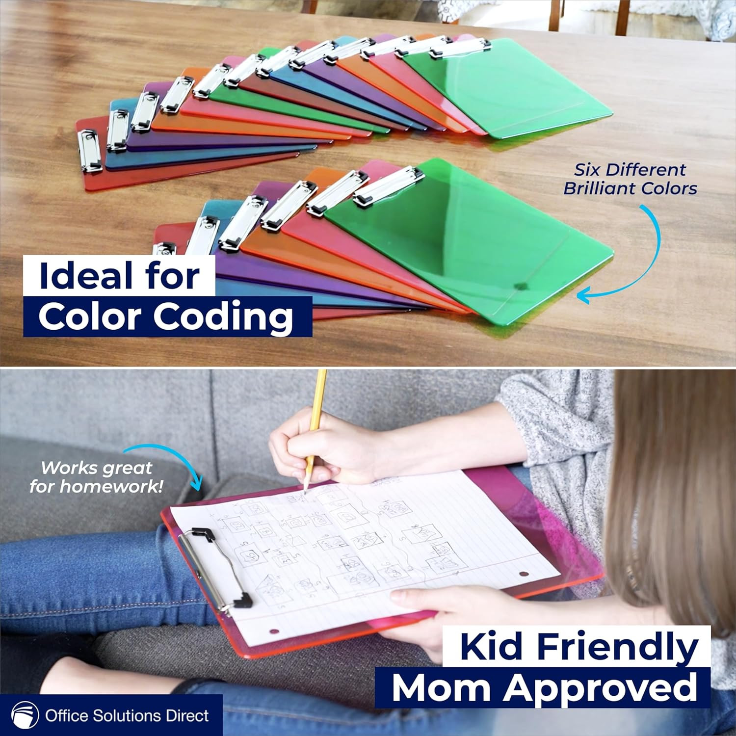 Plastic Clipboards with Low Profile Clip Set of 6-12.5 X 9 Inch Multi Color Plas