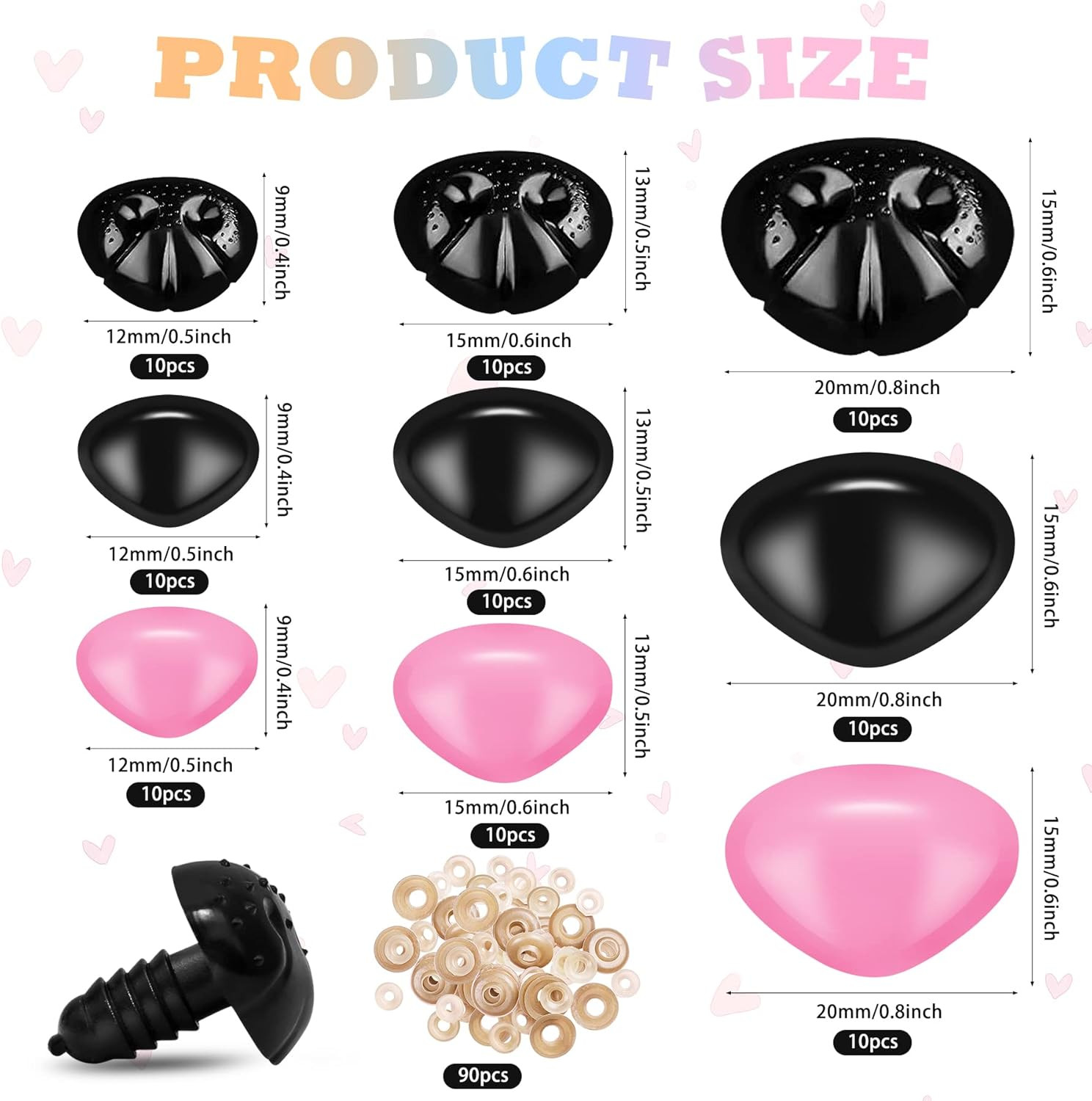 90 Pcs Safety Noses for Amigurumi Large Pink Safety Noses for Animals Doll Noses