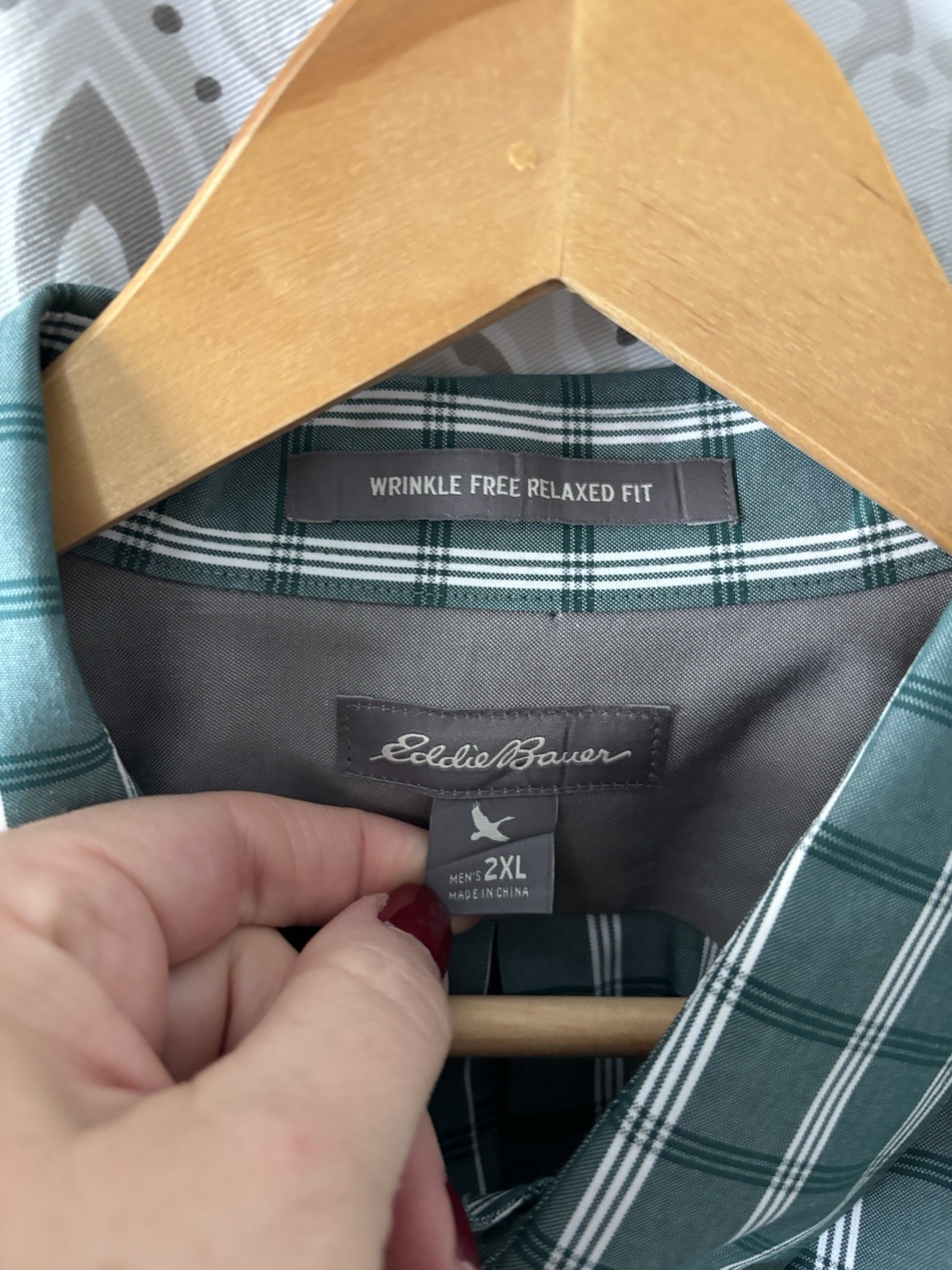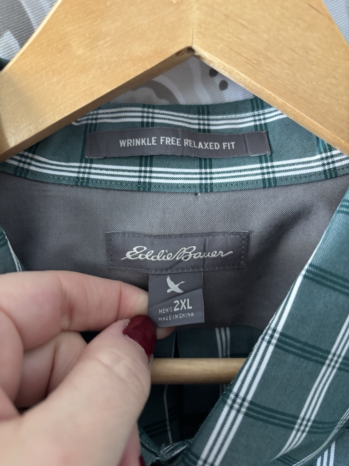 как выглядит Eddie Bauer Mens Shirt Button Up Green Check Plaid Wrinkle Free Relaxed Fit 2XL фото