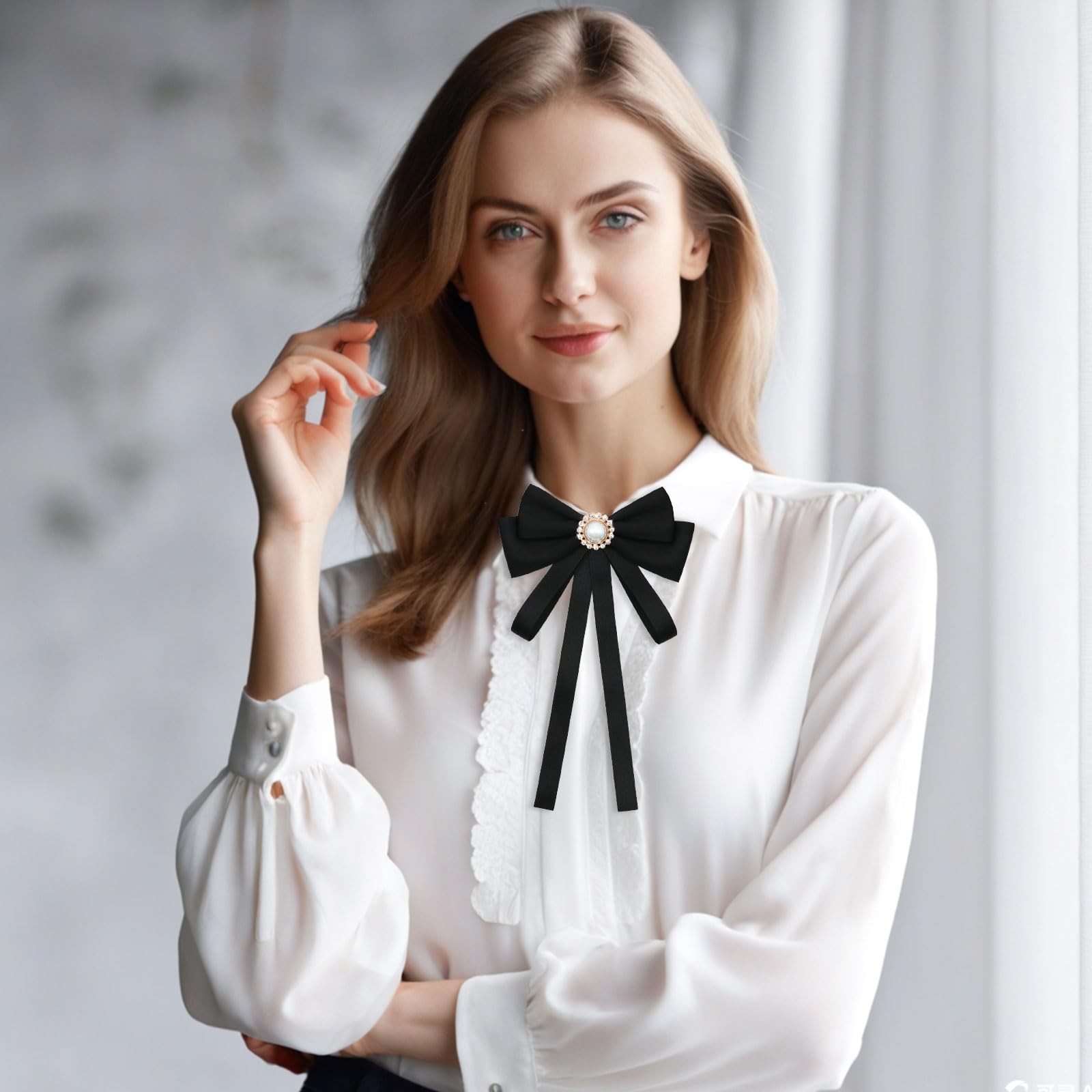 как выглядит Black Bow Tie for Women, Ribbon Bow Ties Adjustable Pre-Tied Necktie For Wome... фото