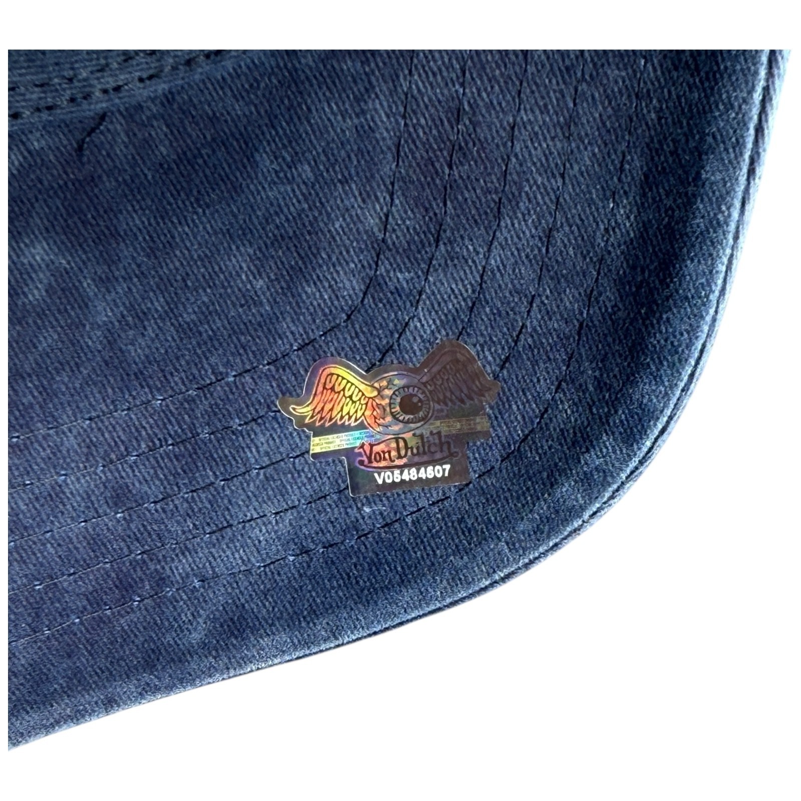 как выглядит Von Dutch Hat DISTRESSED BLUE DENIM Logo Trucker Mesh SnapBack Cap NEW W/ TAGS фото