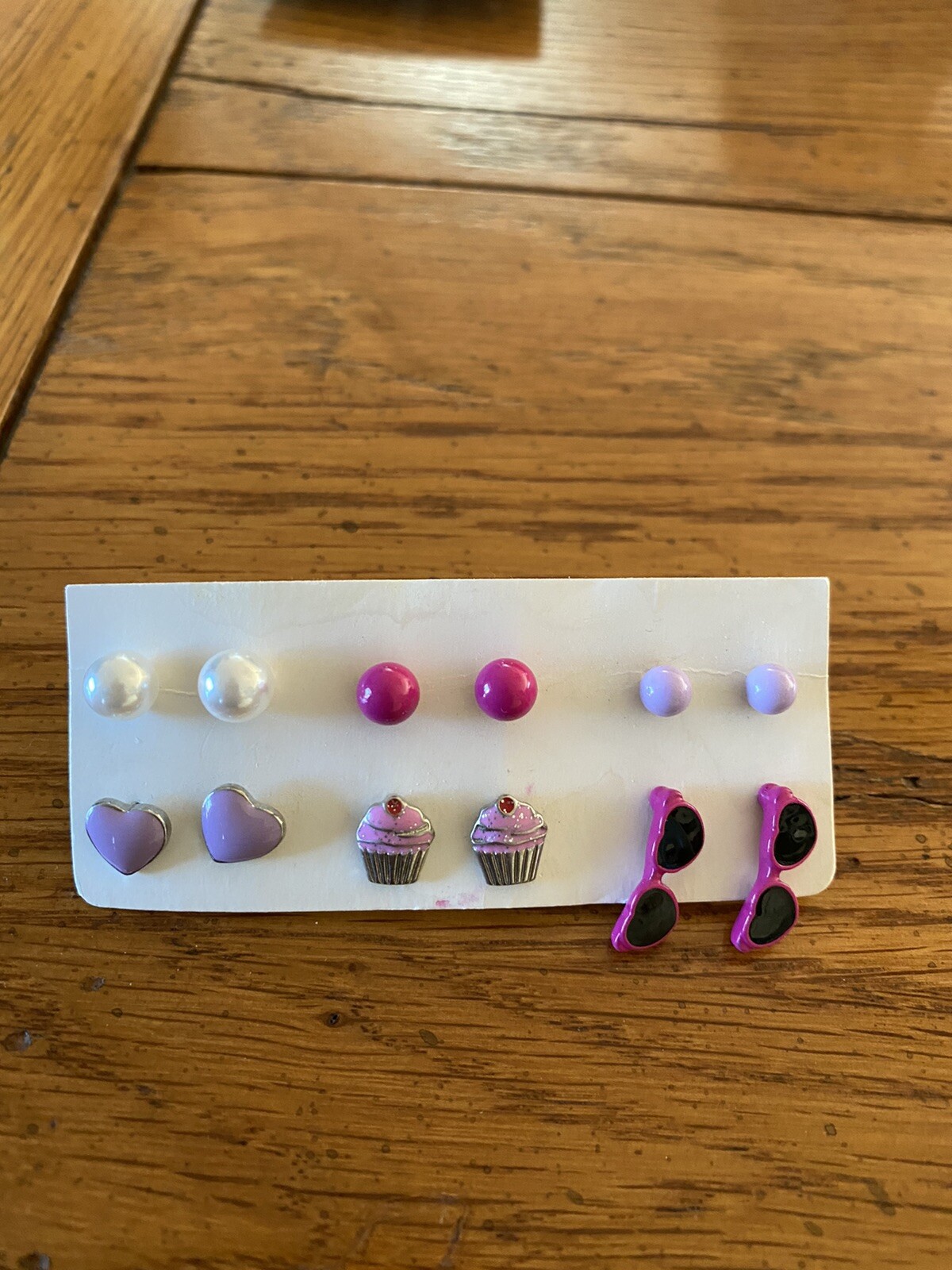 Girls Earrings Set Of 6 Cupcakes Sunglasses Hearts Purple Pink Studs