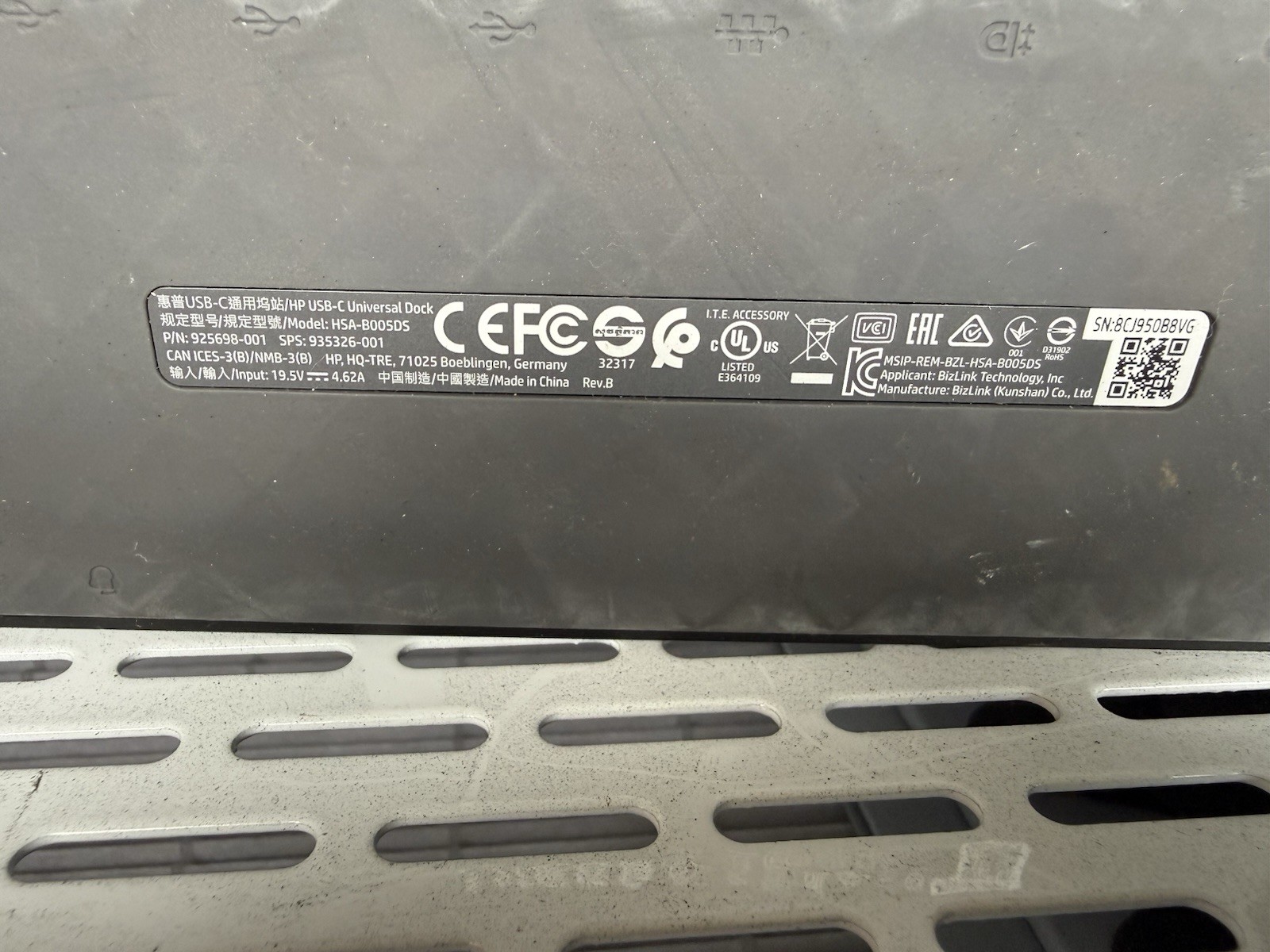 Original HP HSA-B005DS 925698-001 USB-C Universal Docking Station, HP Power Cord