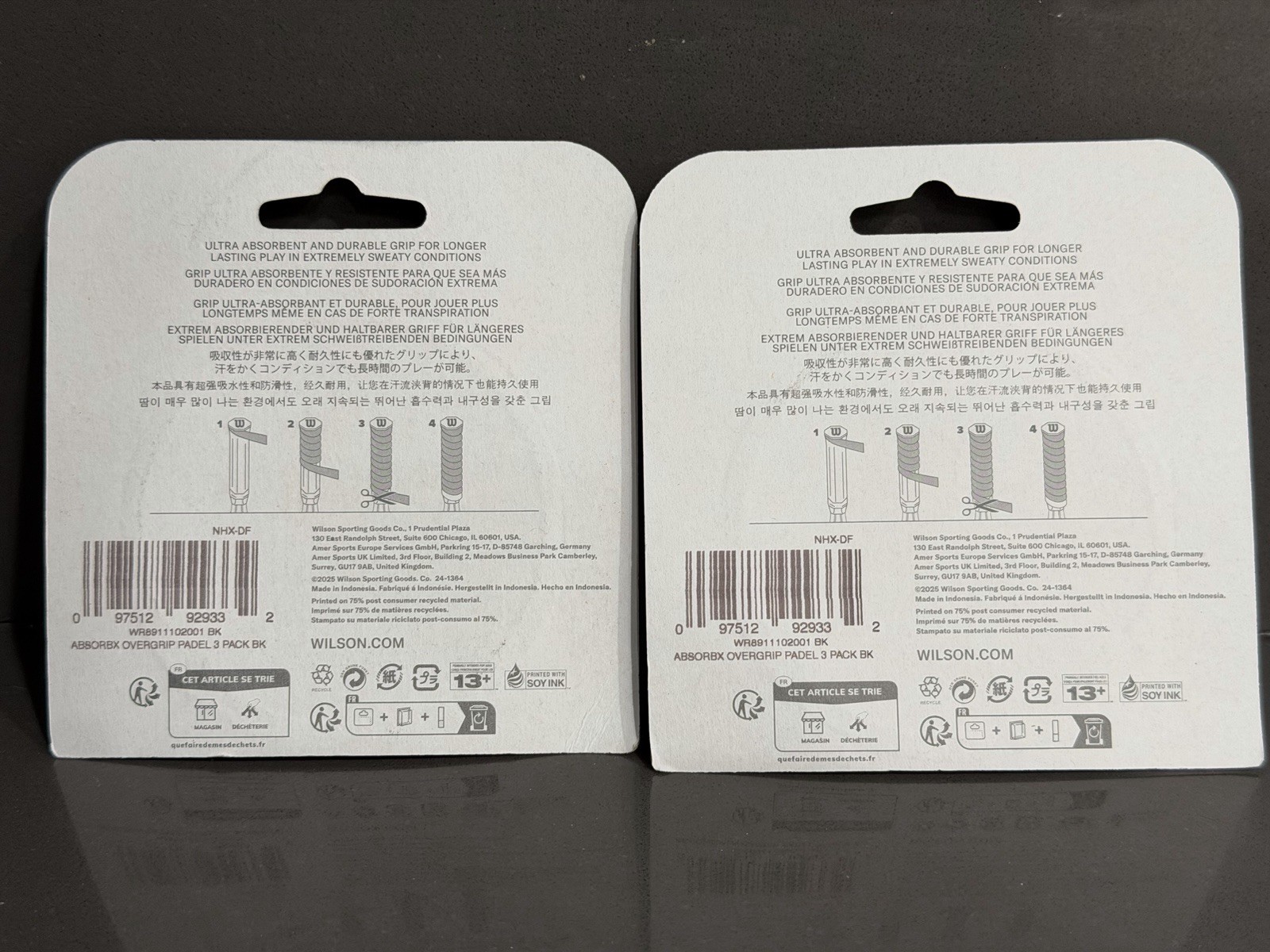 2 X Wilson AbsorbX Padel Absorbent Overgrip Set