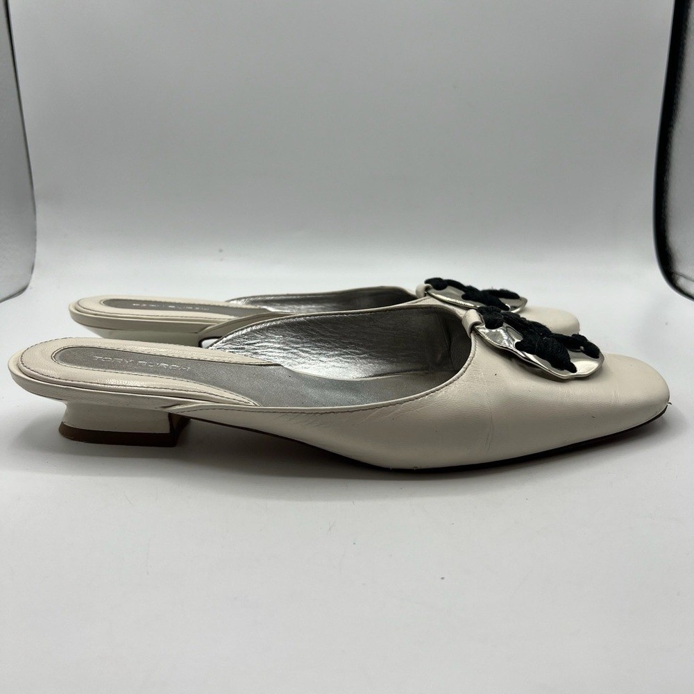 как выглядит Tory Burch Sz 10 Patos Logo Kitten Heel Mules фото