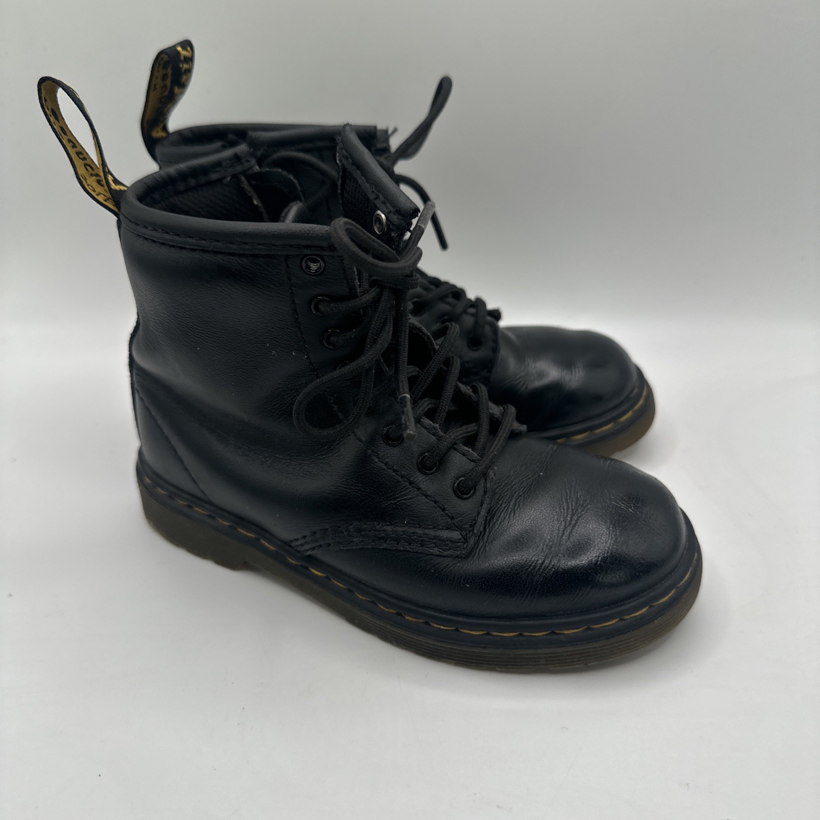 Dr. Martens KIDS 1460T Leather Lace Up Combat Boots-Size 10-Black Preowned