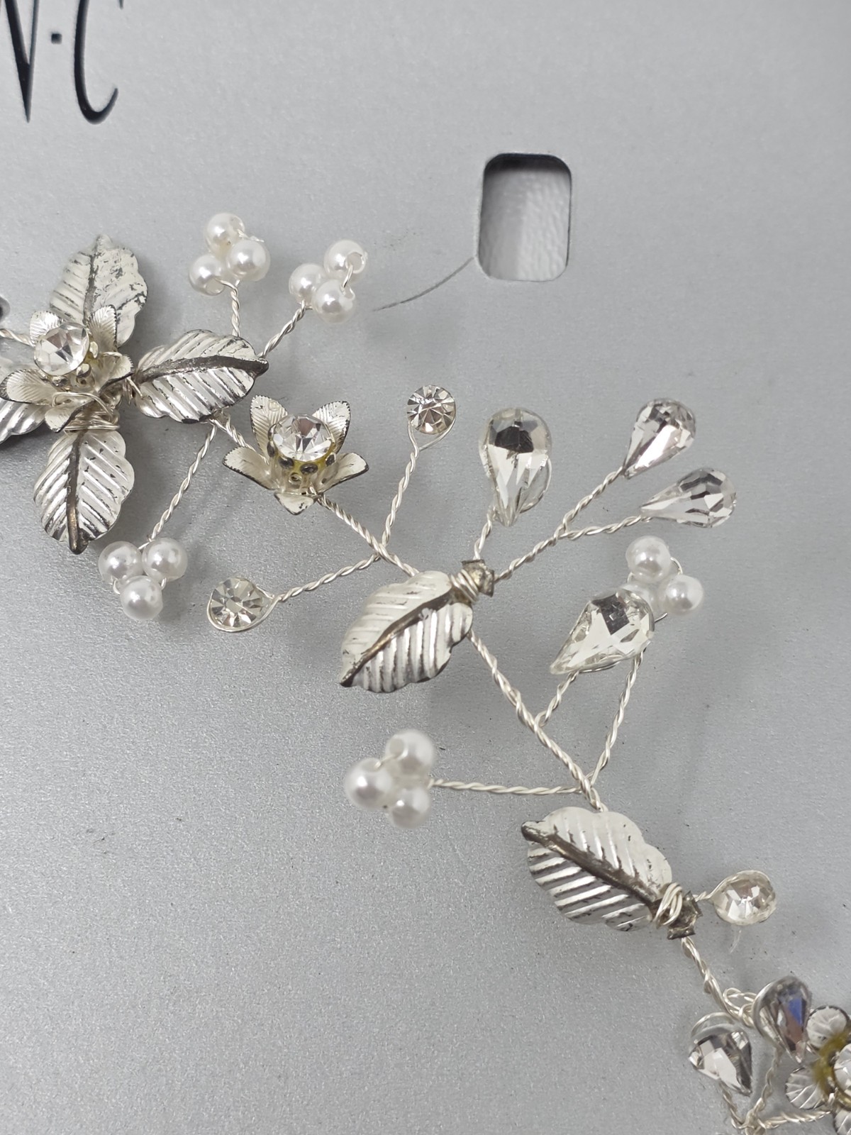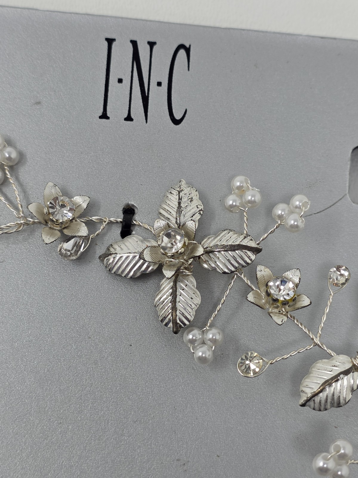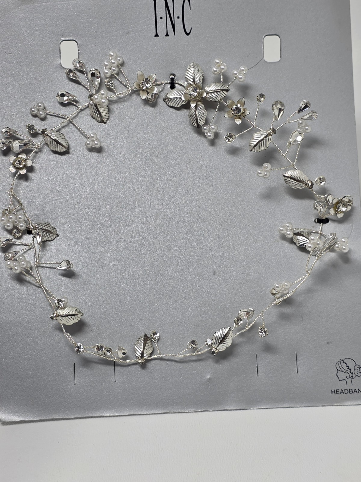 как выглядит INC Silver-Tone Crystal Imitation Pearl Floral Halo Bridal Headband фото
