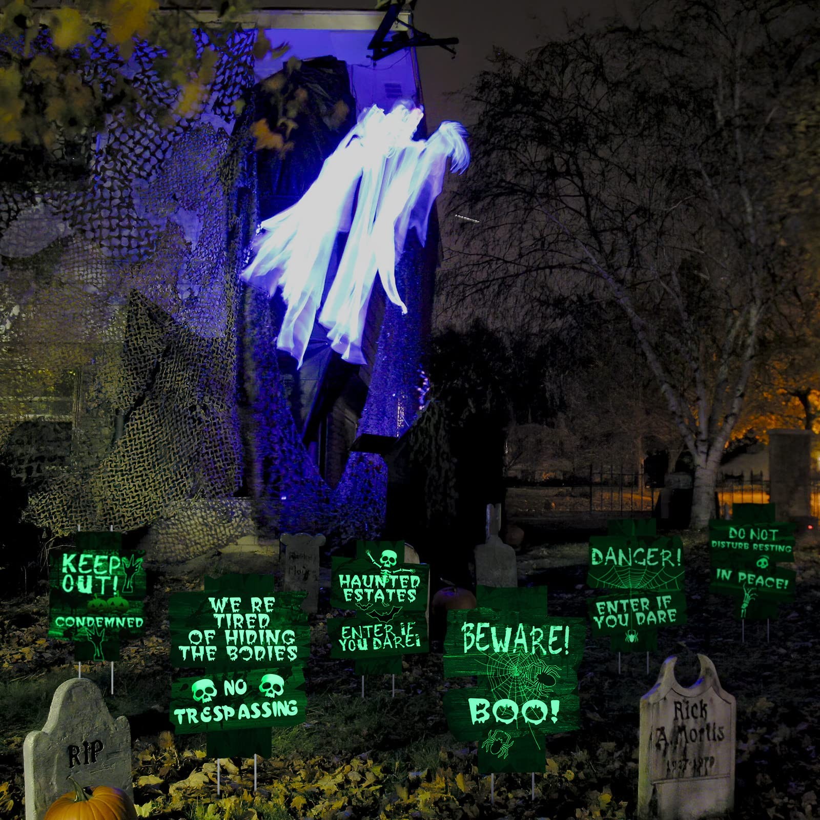 6 Pcs Halloween Decorations Glow in Dark Yard Sign Fluorescence Scary Hallowe...