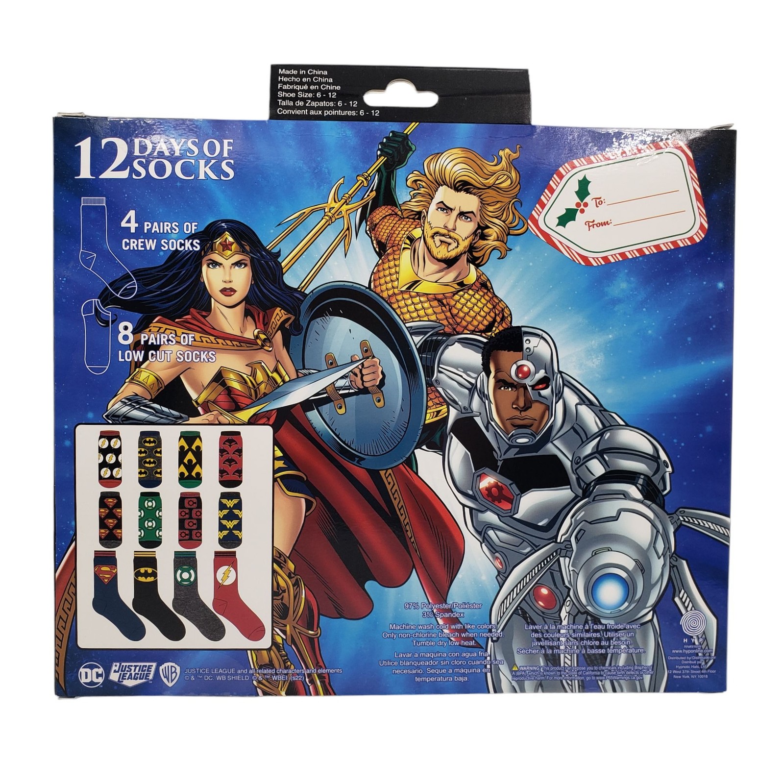 Justice League DC Comics Novelty Socks 12 Pairs Advent Gift Box Adult Size 6-12