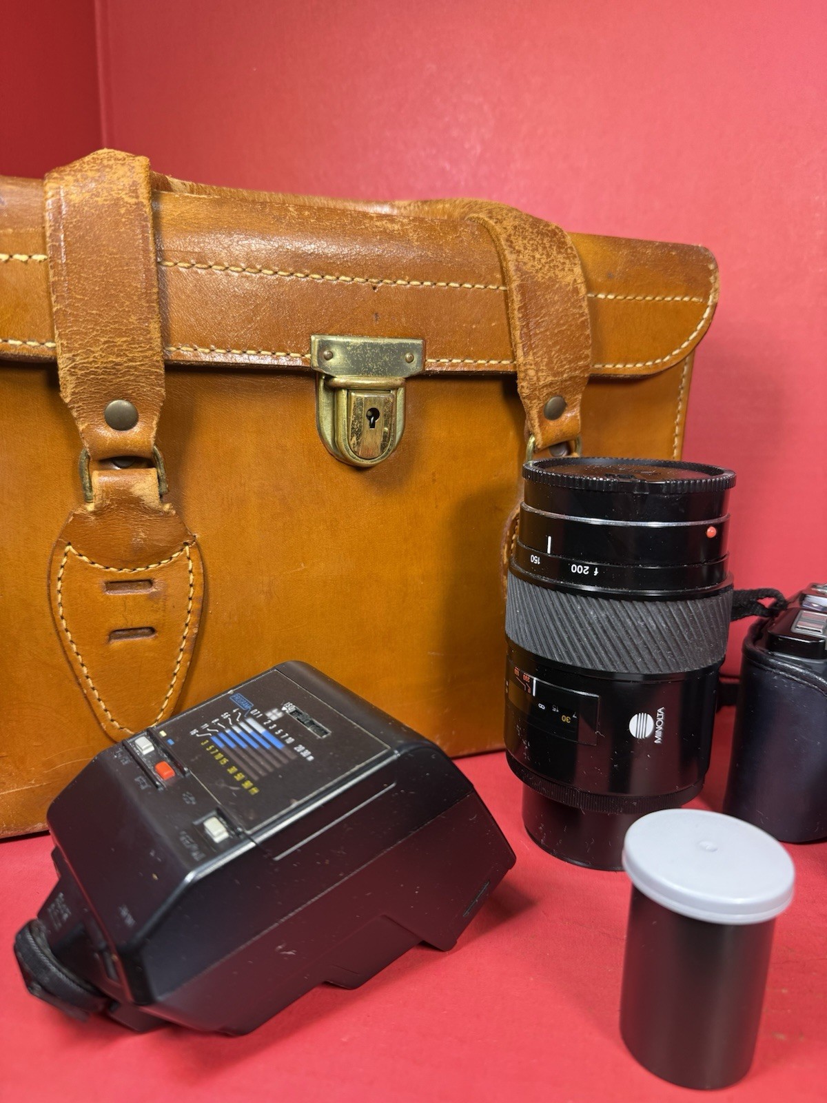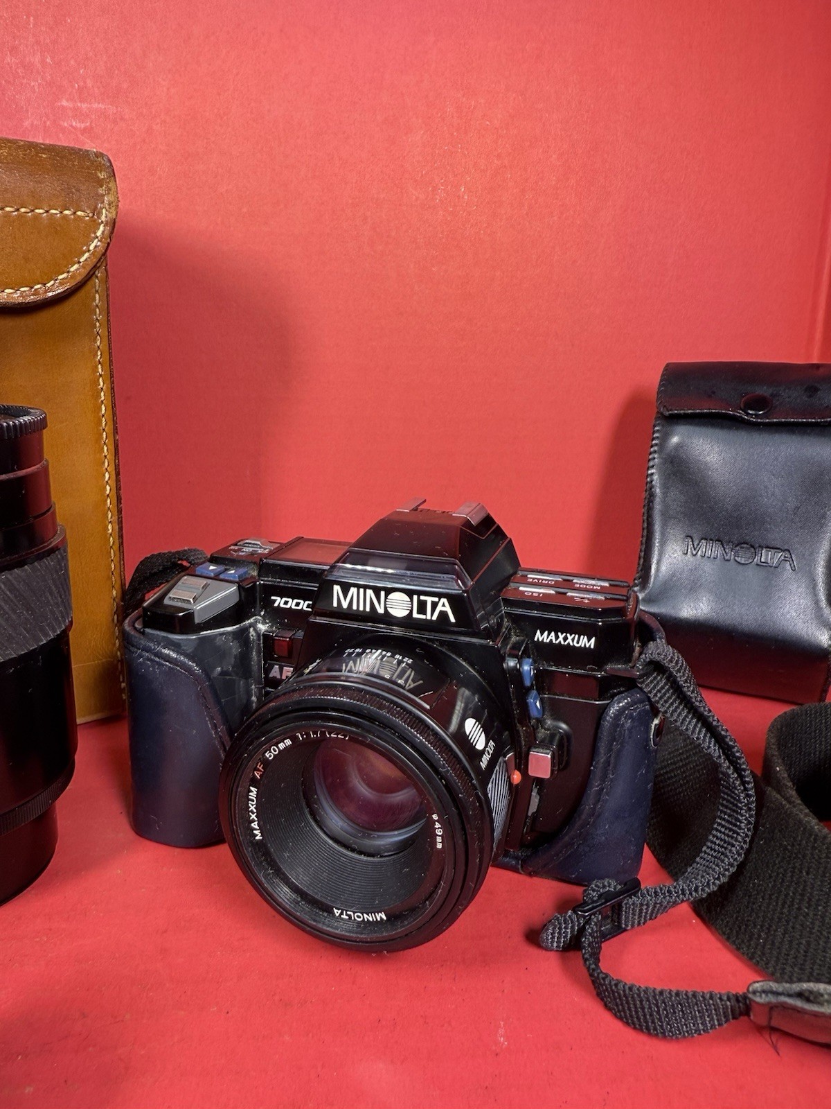 как выглядит Minolta Maxim 7000 AF With Extra 100-200 Zoom Lens Accessories And Antique Case фото