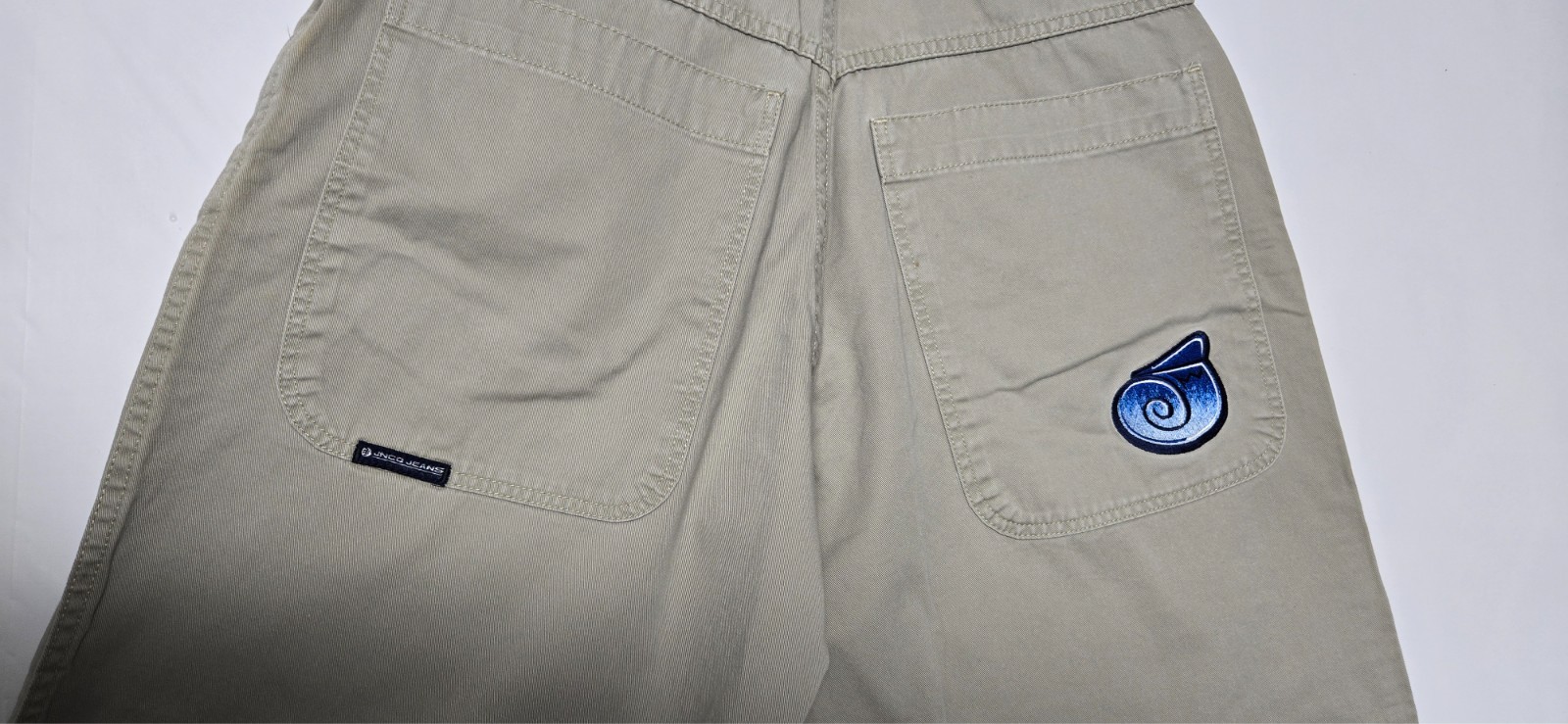 JNCO Jeans Khaki Wide Leg Twill Pants 34x32 Embroidered Logo Y2K Skate