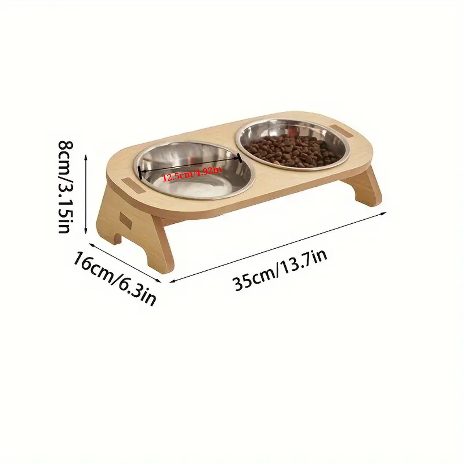 Elevated Cat Food Water Bowl Set, Wooden Frame with 2 Stainless Steel Bowls