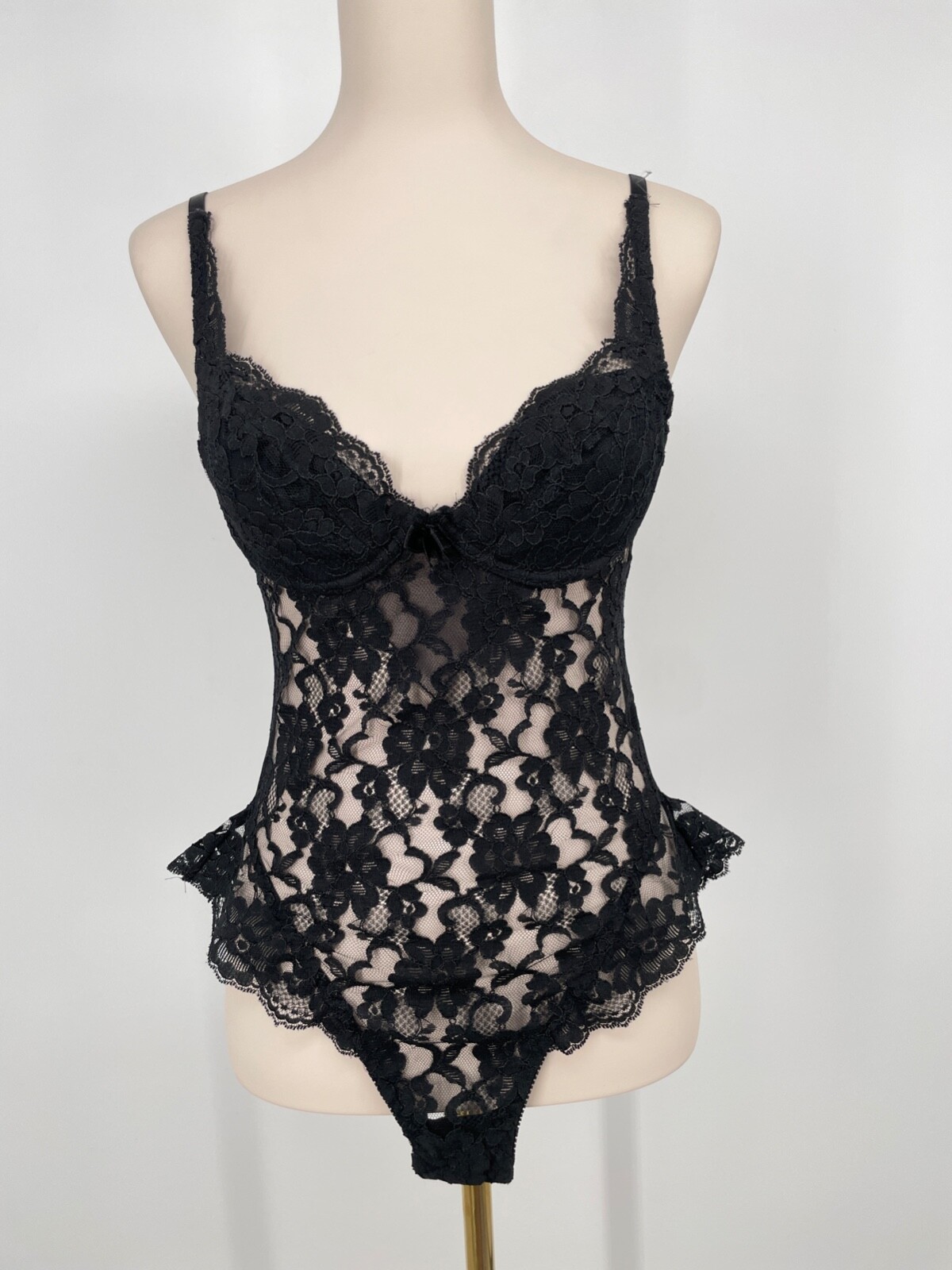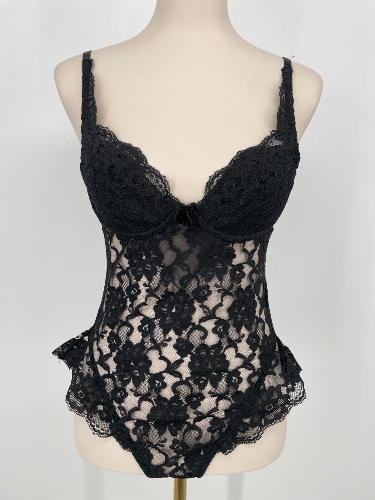 как выглядит Vintage Gold Label Size 36B Victorias Secret Lace Teddy Bodysuit Onepiece Black фото