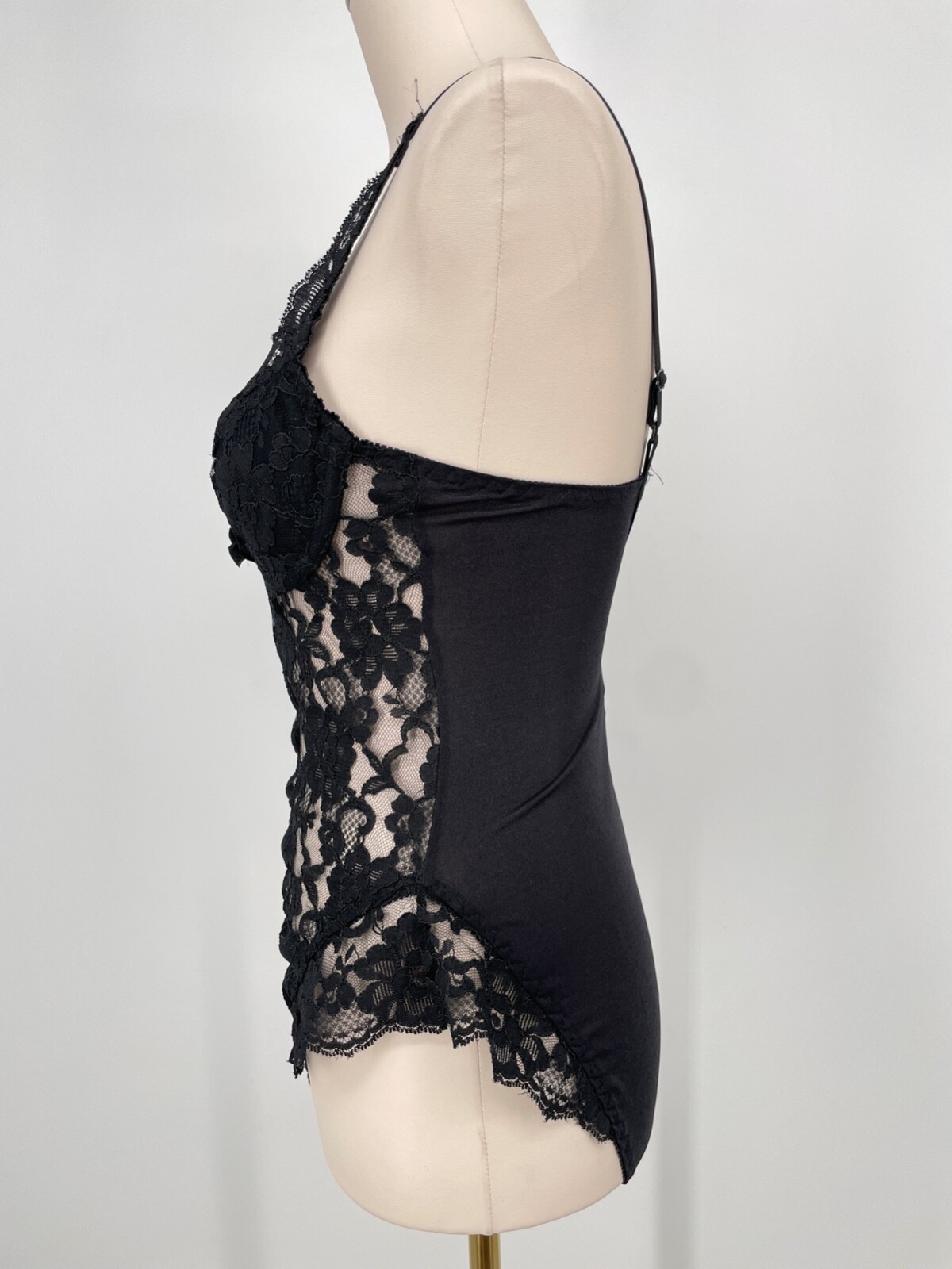 Vintage Gold Label Size 36B Victorias Secret Lace Teddy Bodysuit Onepiece Black