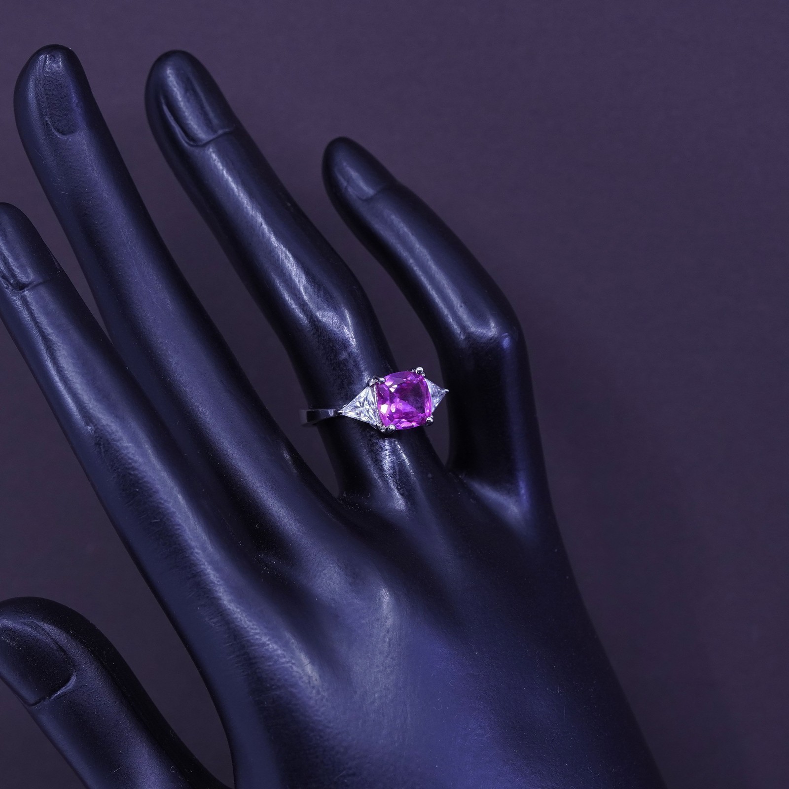 как выглядит Size 5.25, vintage Sterling 925 silver ring with pink crystal and clear cz фото