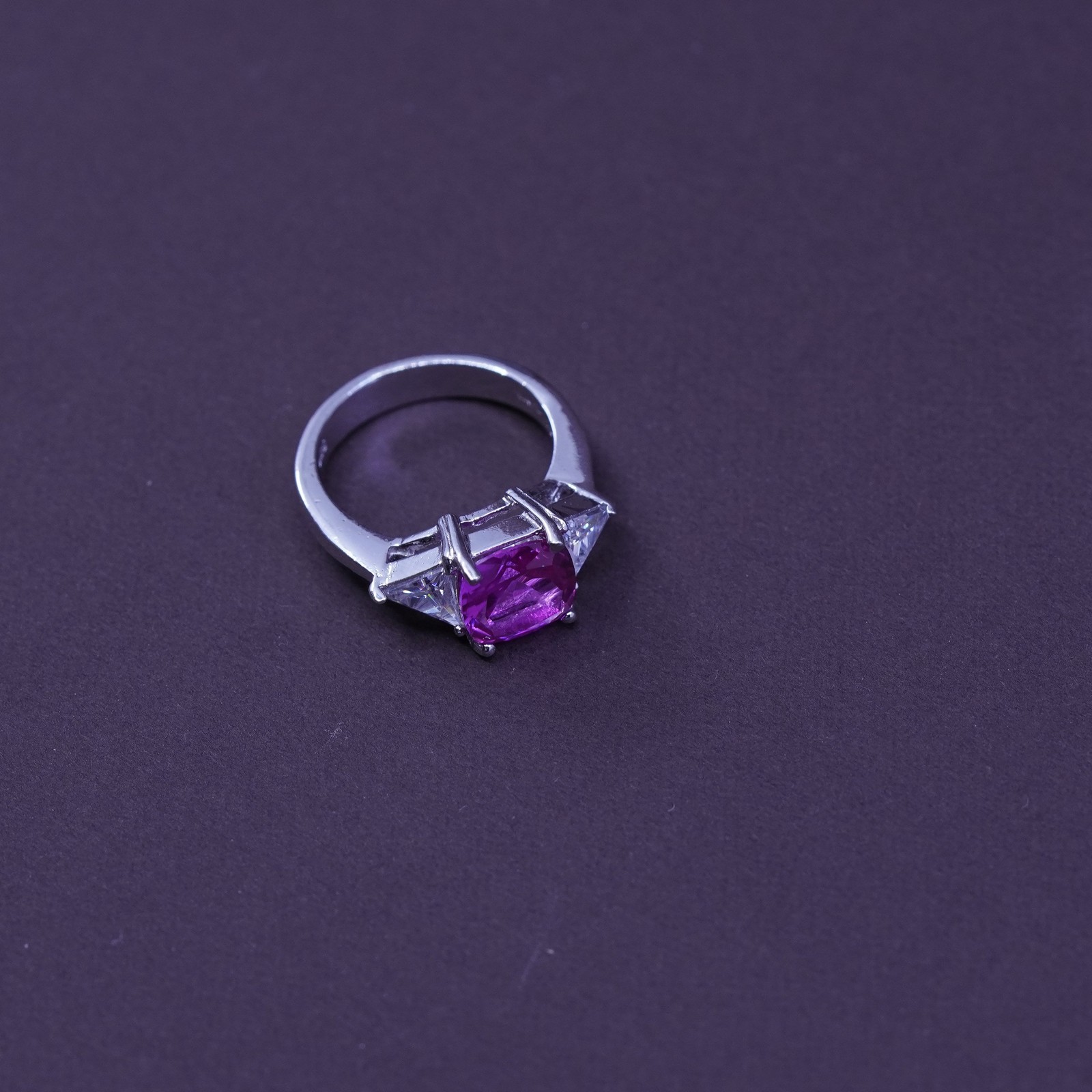 Size 5.25, vintage Sterling 925 silver ring with pink crystal and clear cz