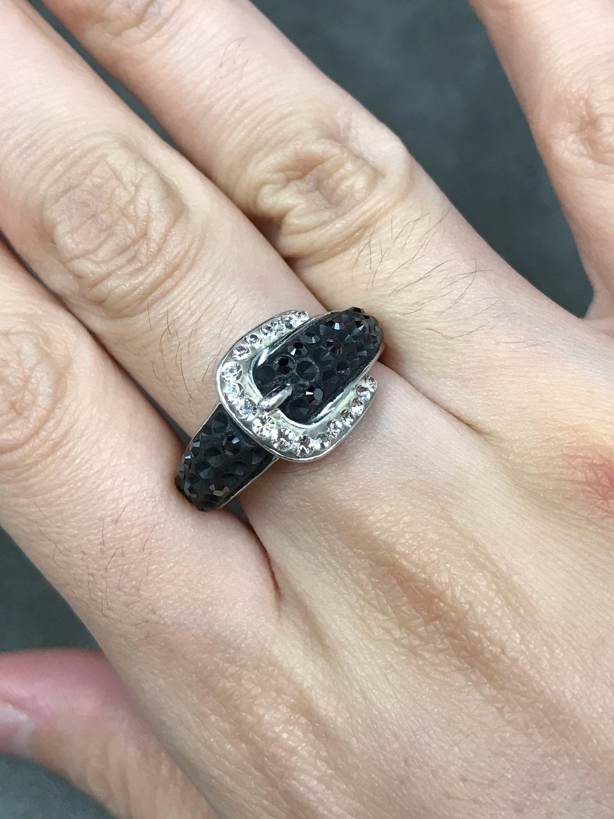 sz 8.5, vtg AU Sterling silver handmade belt ring, 925 w/ crystal cluster