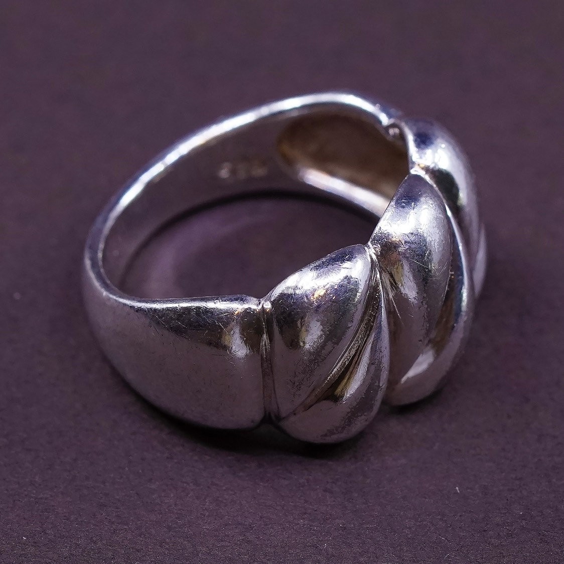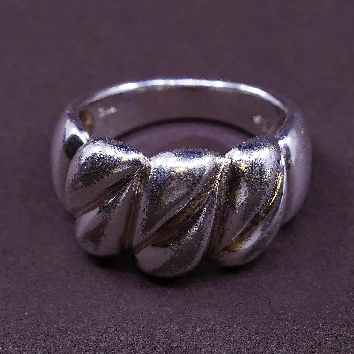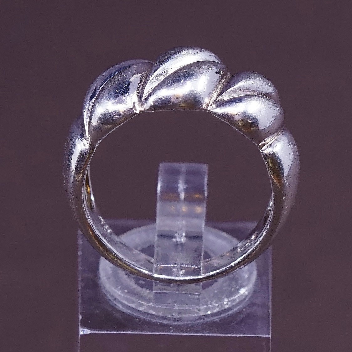 sz 8.25, vtg Sterling silver handmade ring, 925 silver ribbed band