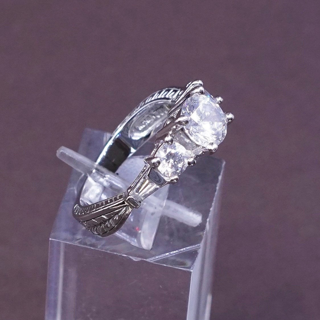 как выглядит sz 6, vtg Sterling silver engagement ring, 925 w/ clear crystal ring фото