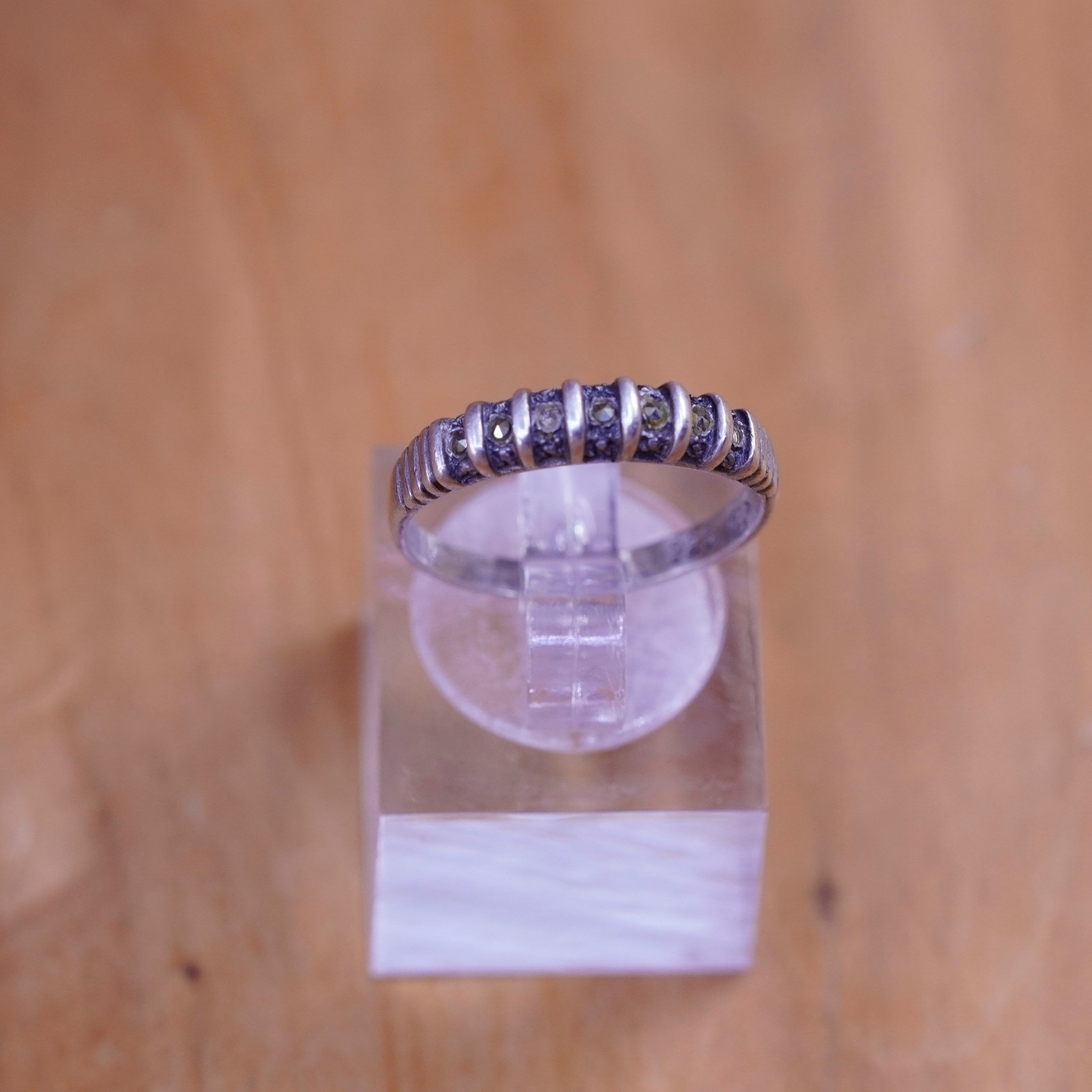 как выглядит Size 6, vintage Sterling silver ring with marcasite, 925 stackable band фото