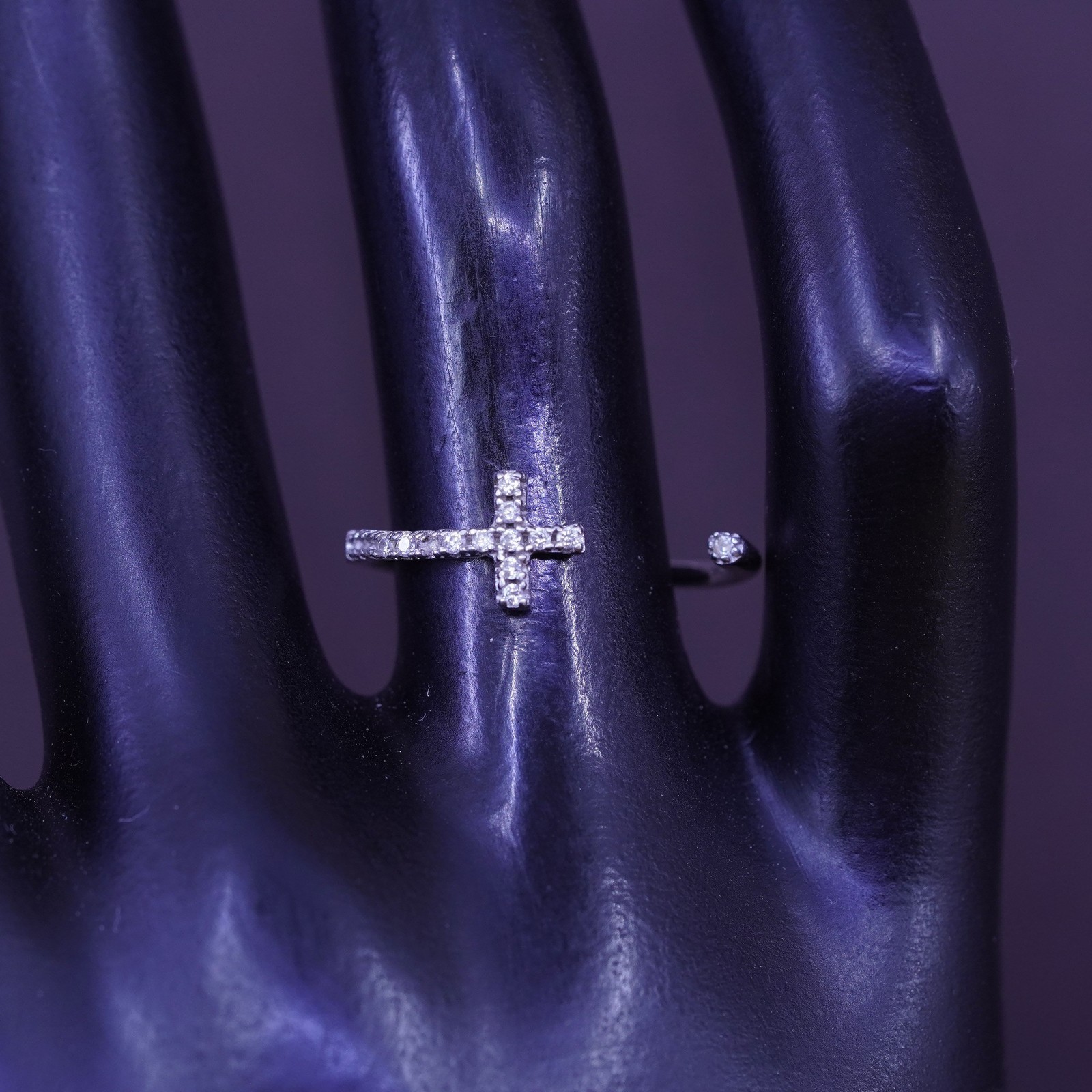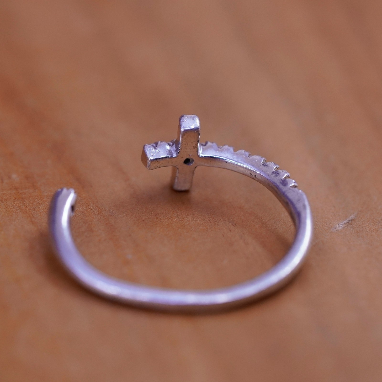 Size Adjustable Vintage Sterling Ring, 925 cross band with cz