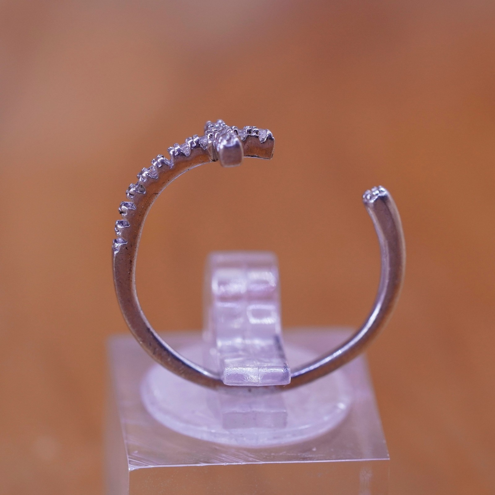 как выглядит Size Adjustable Vintage Sterling Ring, 925 cross band with cz фото