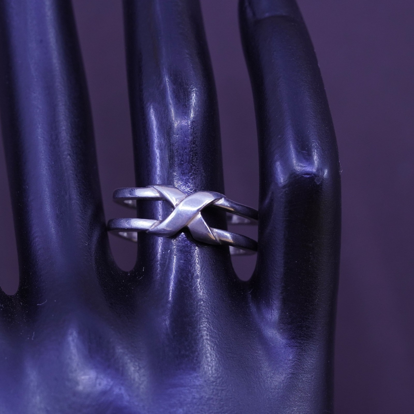 как выглядит Size 10, vintage Sterling silver prayer ring, 925 double band with cross фото