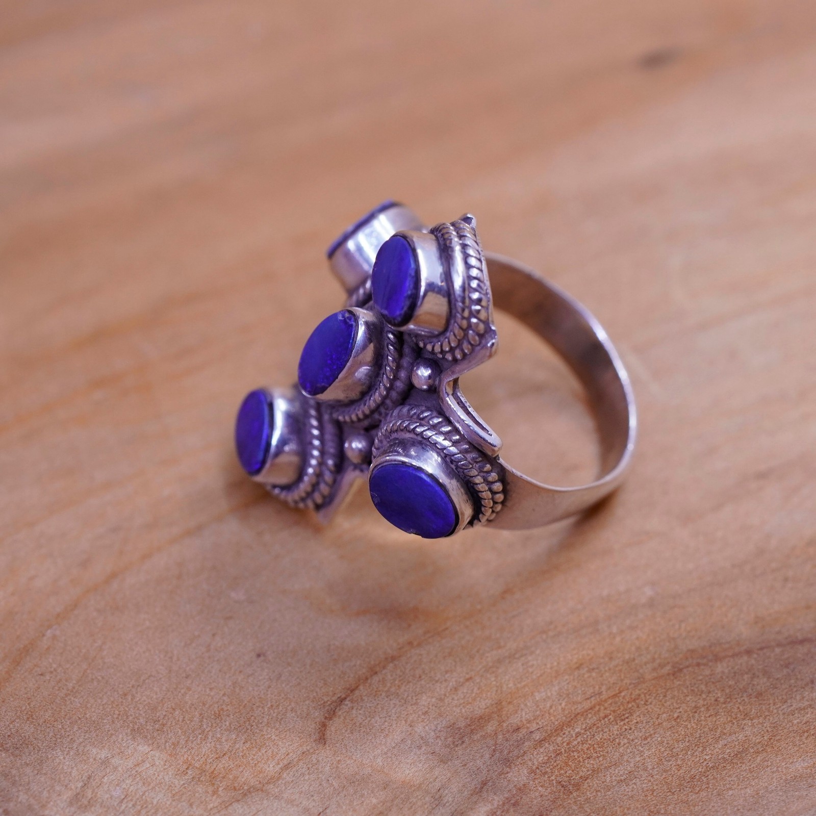 как выглядит Size 7.25, vintage Sterling 925 silver handmade ring with sodalite cable around фото