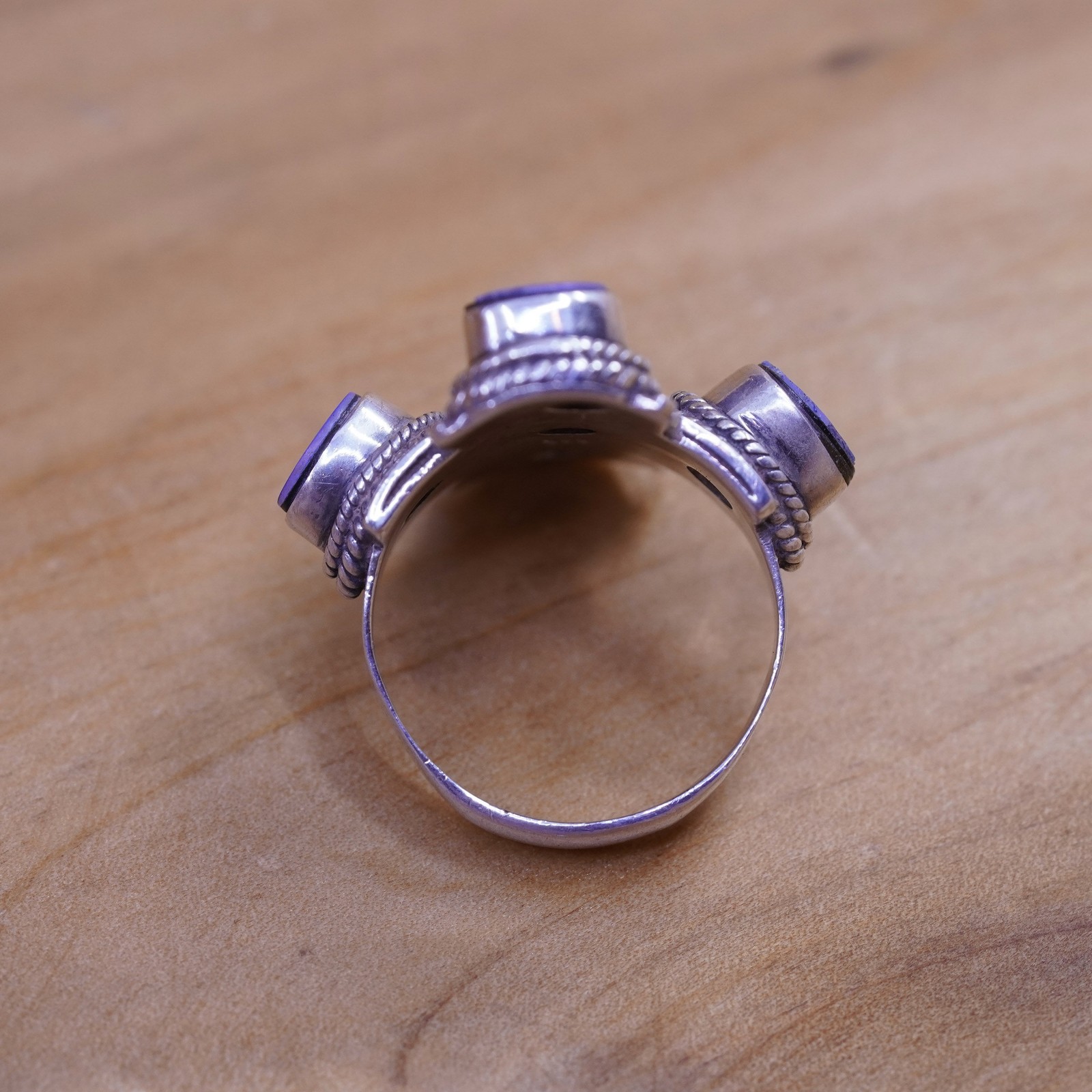 Size 7.25, vintage Sterling 925 silver handmade ring with sodalite cable around