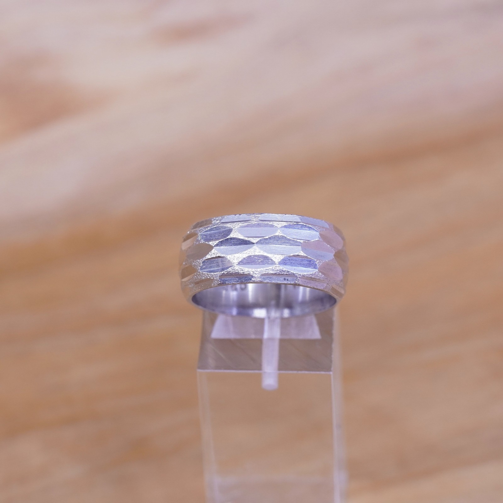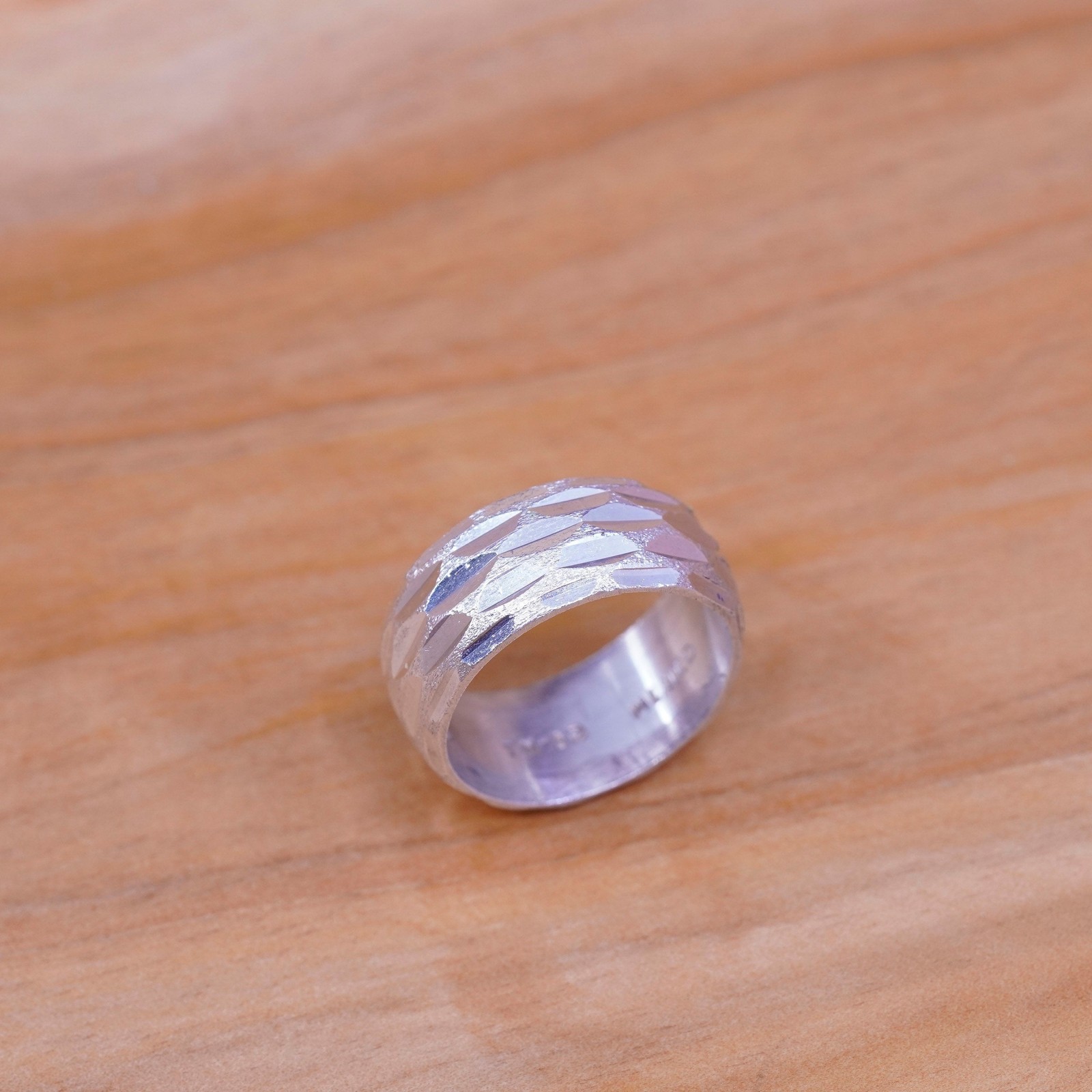 Size 8.5, vintage sterling silver handmade ring, wide textured 925 band