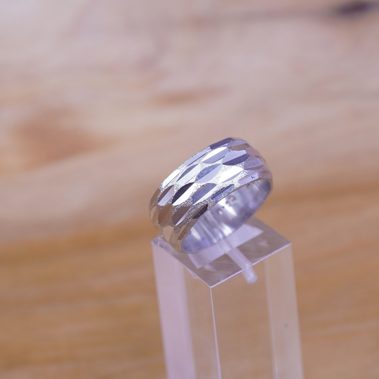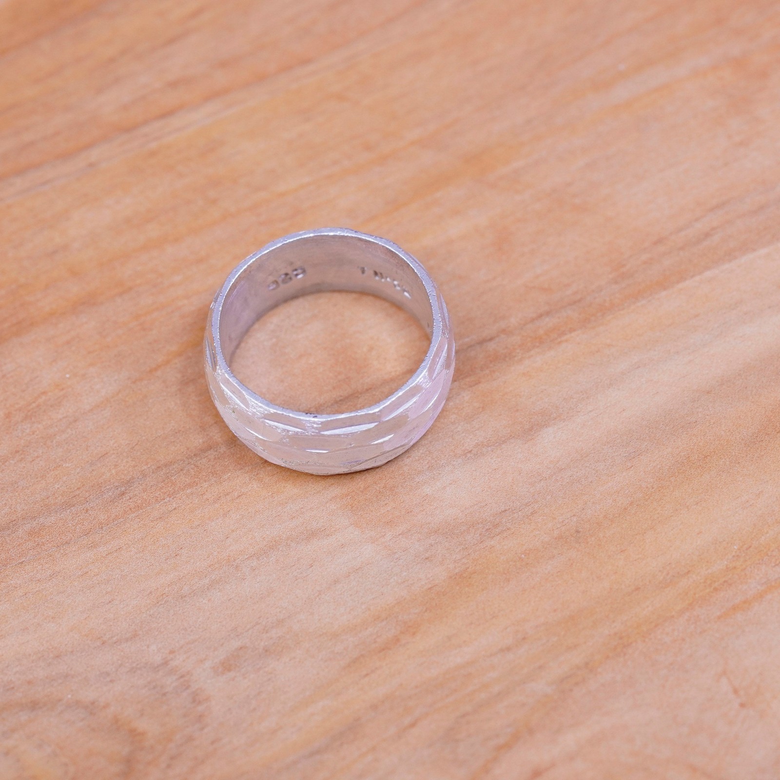 как выглядит Size 8.5, vintage sterling silver handmade ring, wide textured 925 band фото