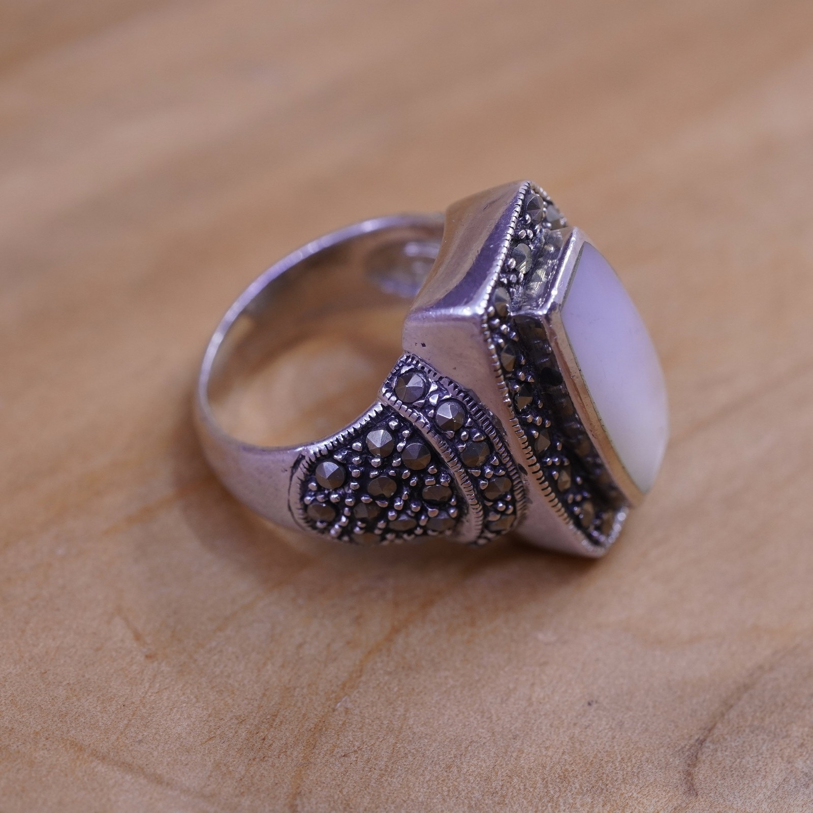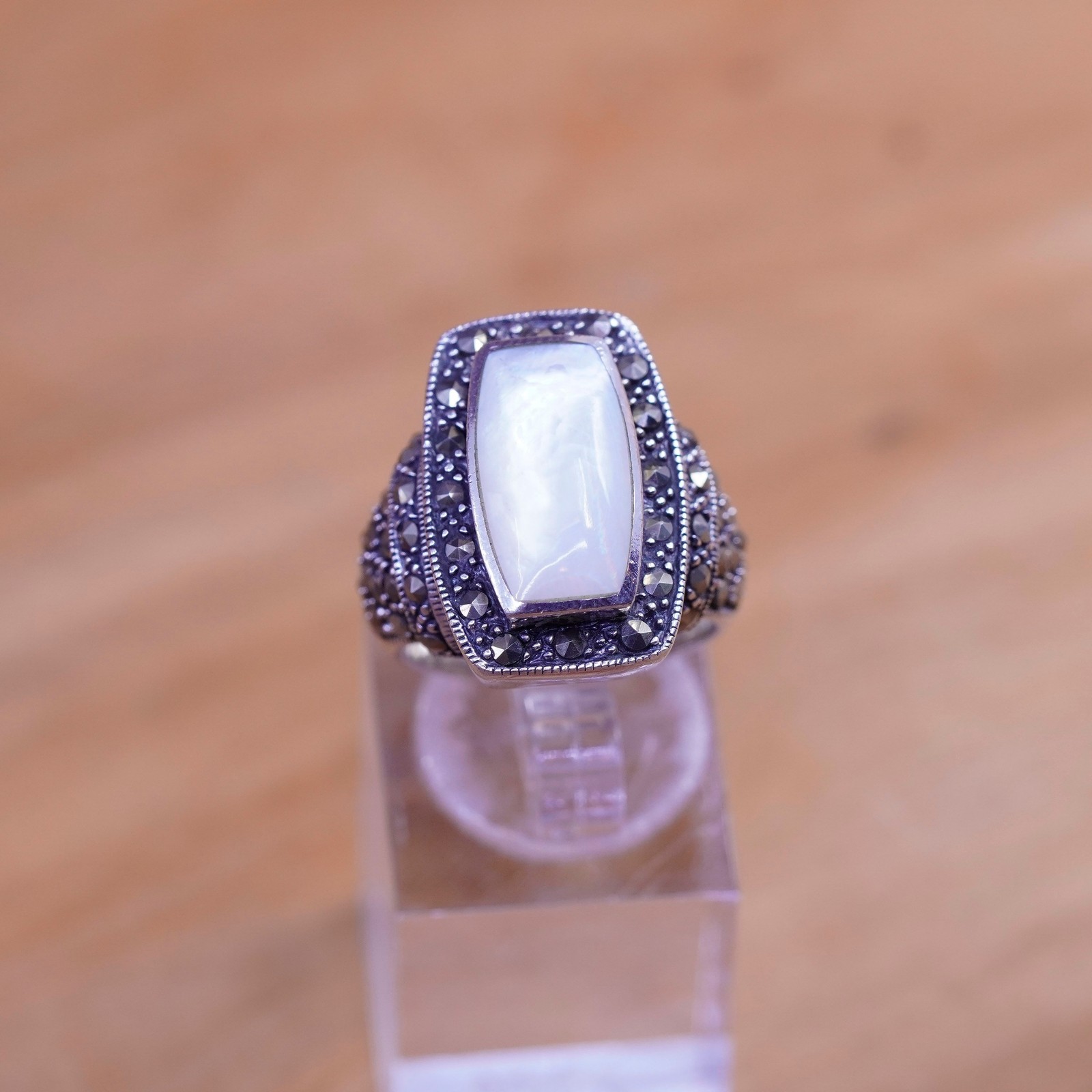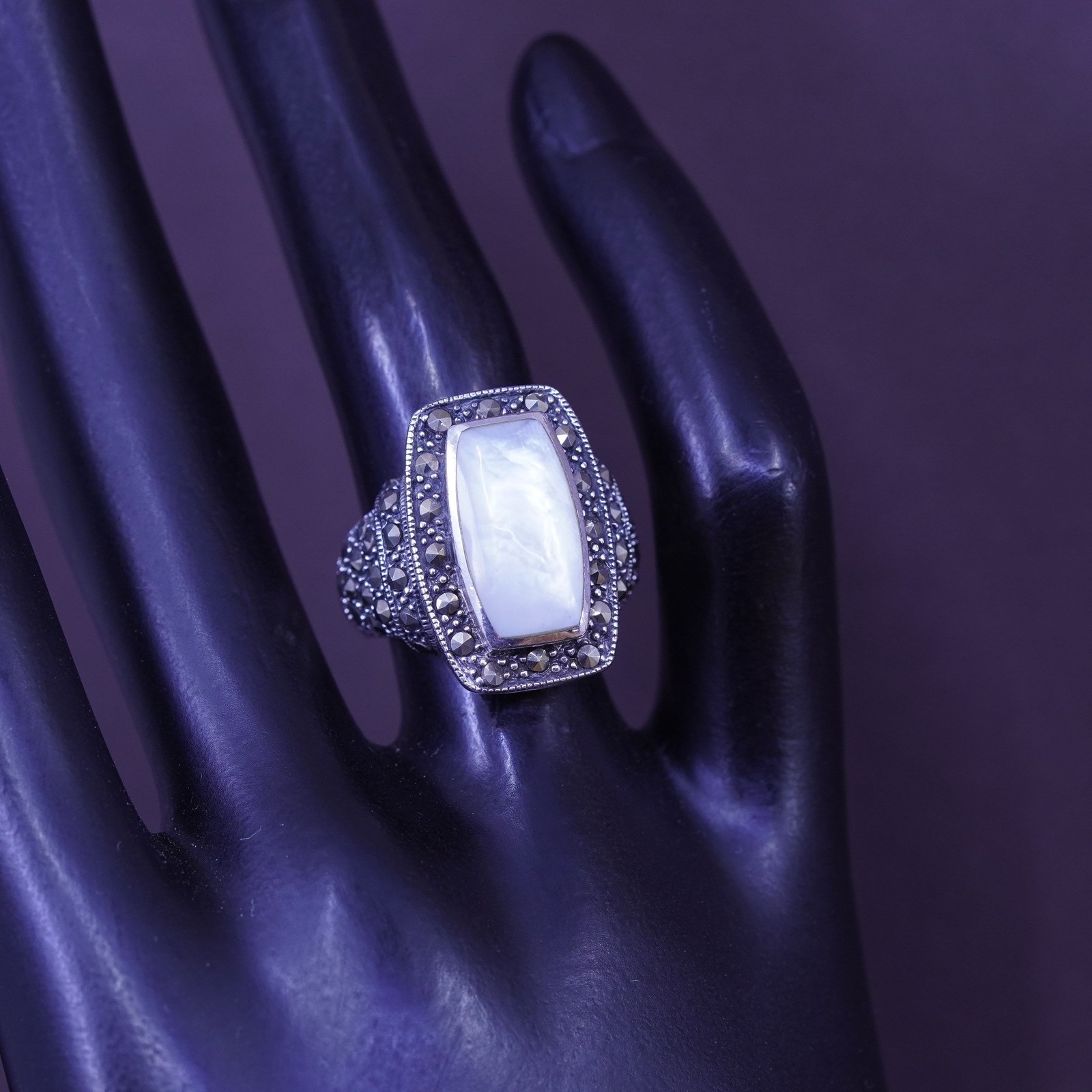 как выглядит Size 6, vintage Sterling 925 silver handmade ring with moonstone marcasite фото