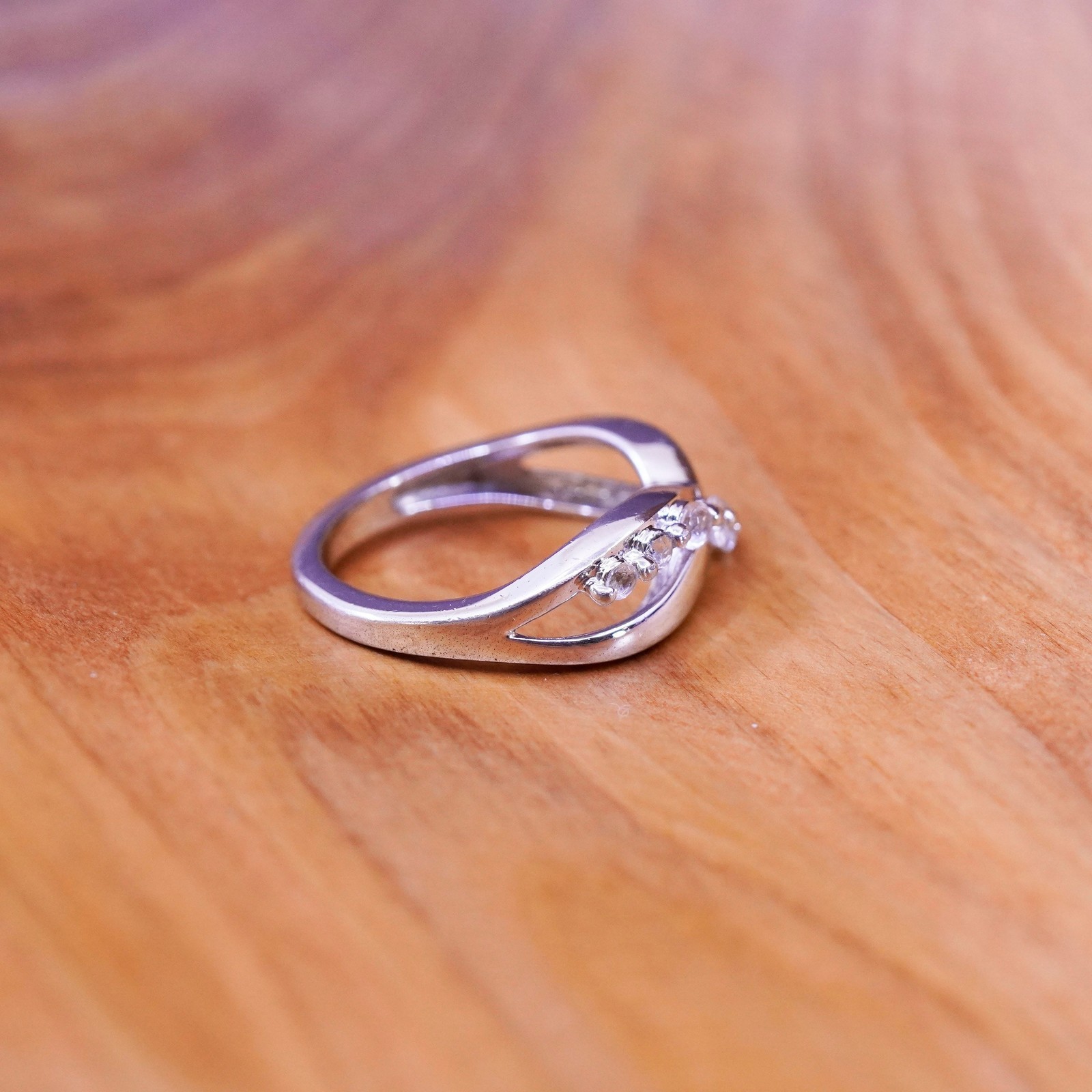 Size 7.25, vintage Sterling silver handmade ring, 925 wavy band with cz