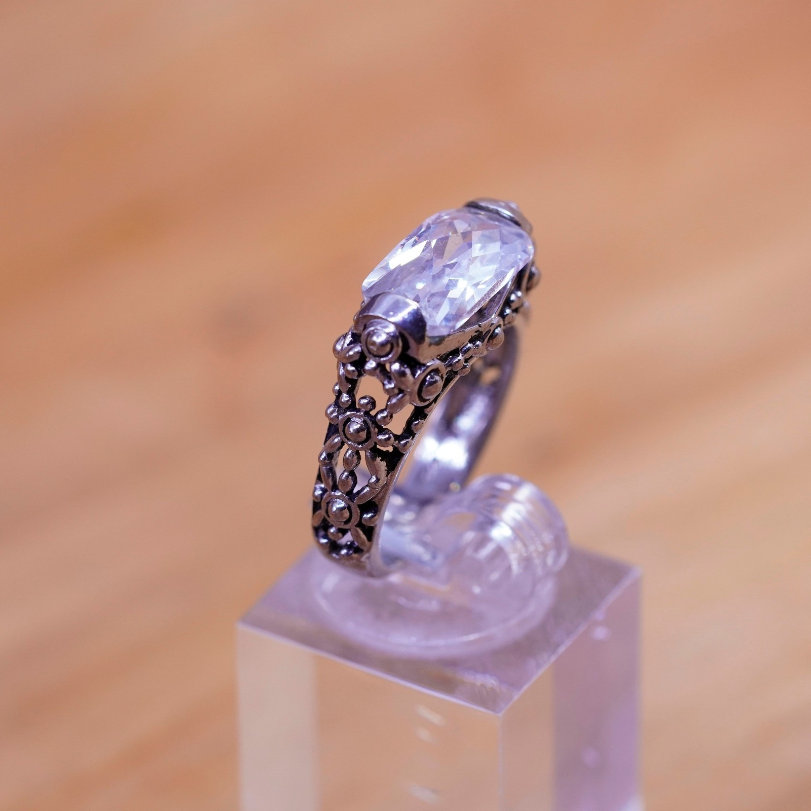 Size 7, vintage Sterling silver handmade ring, 925 filigree band with cz