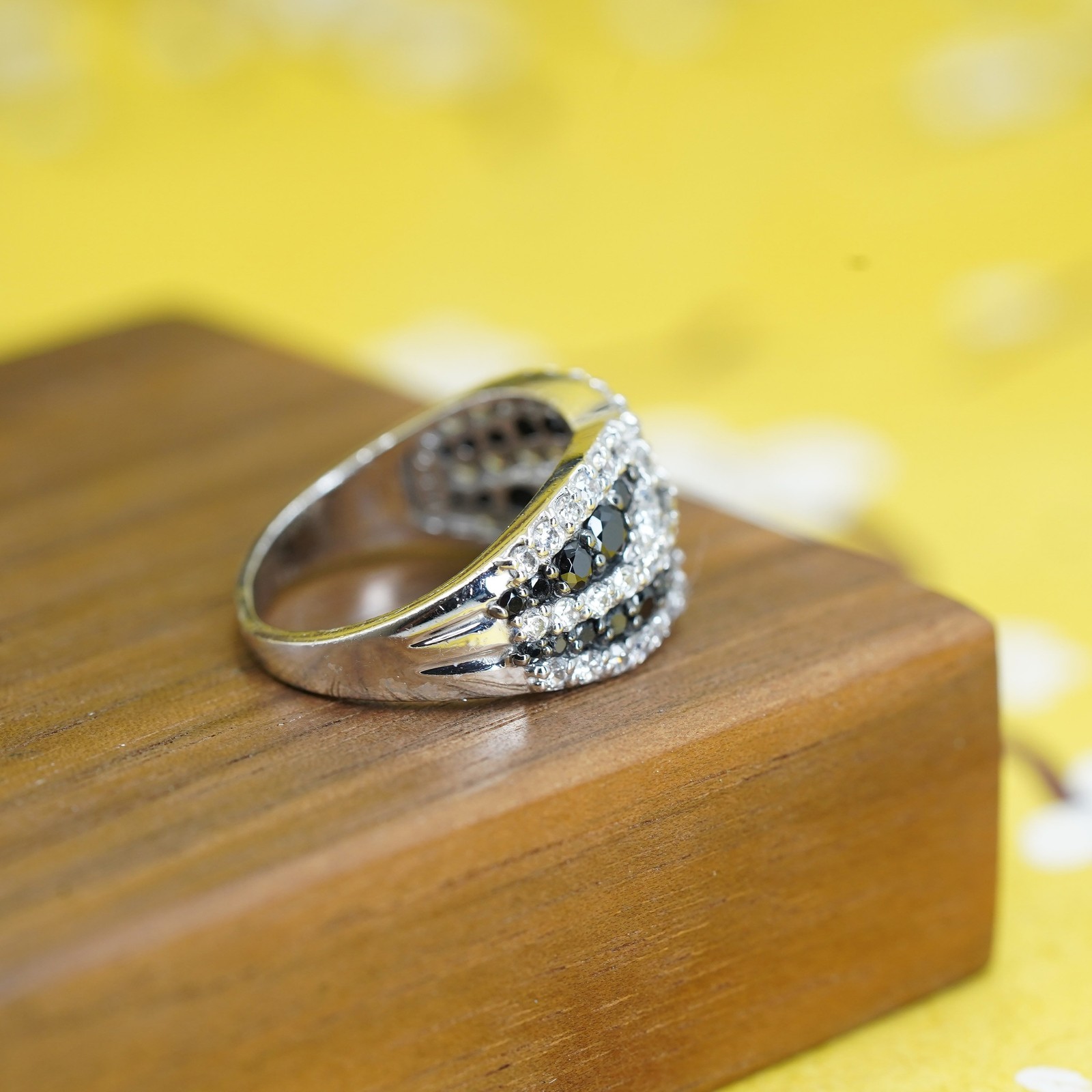 как выглядит Size 8.75, vintage Sterling 925 silver engagement ring cluster black clear cz фото