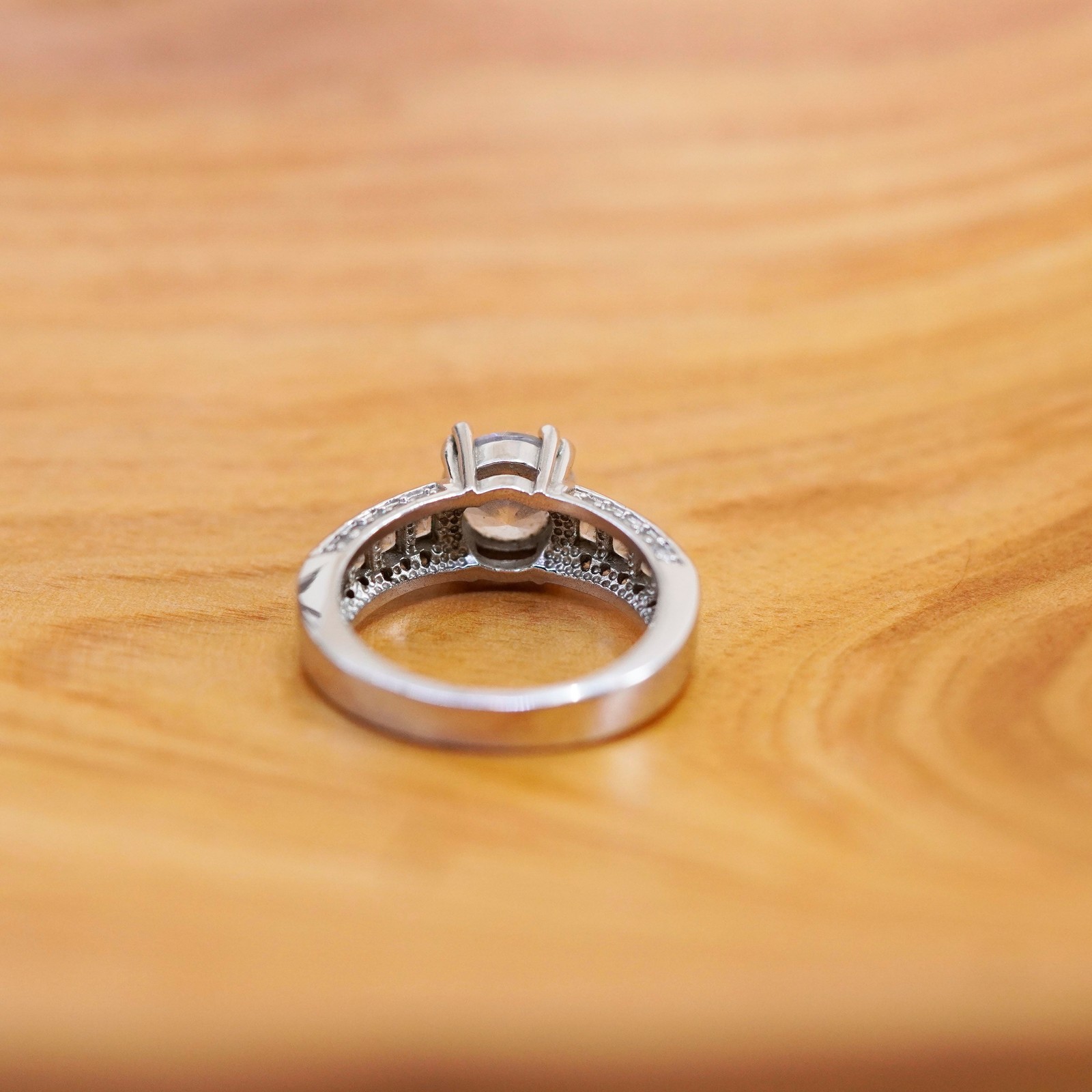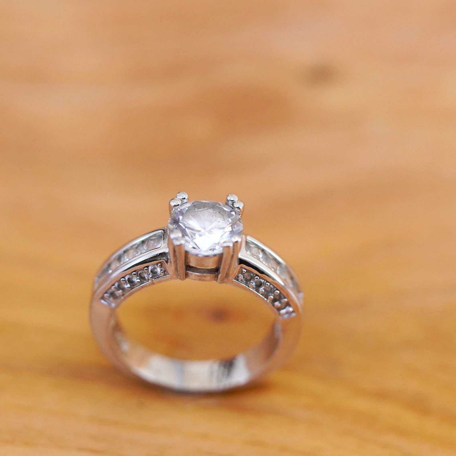 как выглядит Size 8, vintage Sterling 925 silver engagement ring with crystal ring фото
